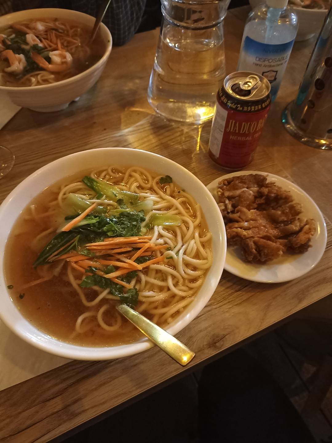 Attention c'est un restaurant chinois, il ne s'agit donc pas de ramen a la japonaise. Raviolis mou et huileux, suivis d'un saladier de soupe au bouillon fade et aux nouilles molles. Pas terrible.