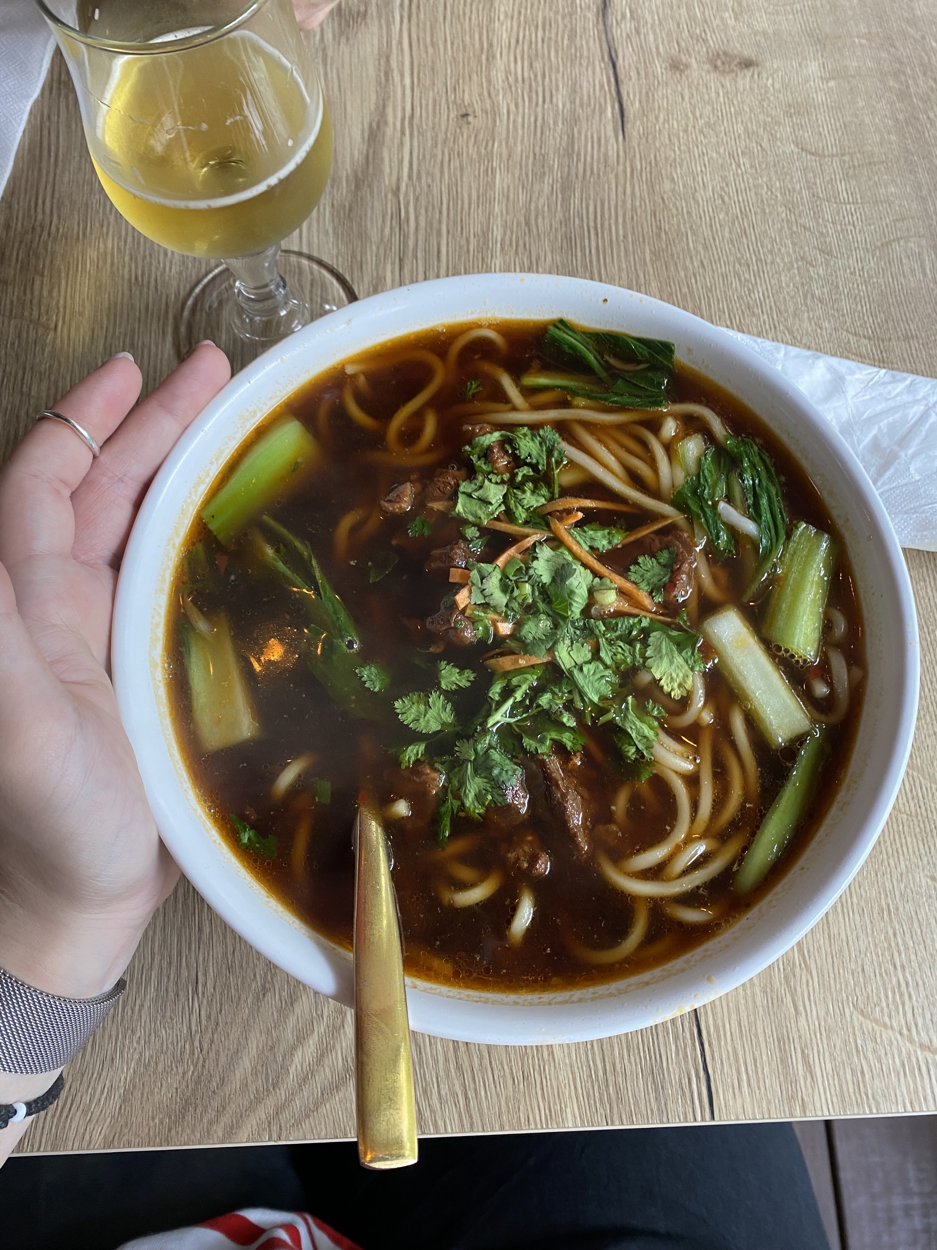Très très bon, service rapide, viande fondante, nouilles maison, lieu agréable, juste parfait