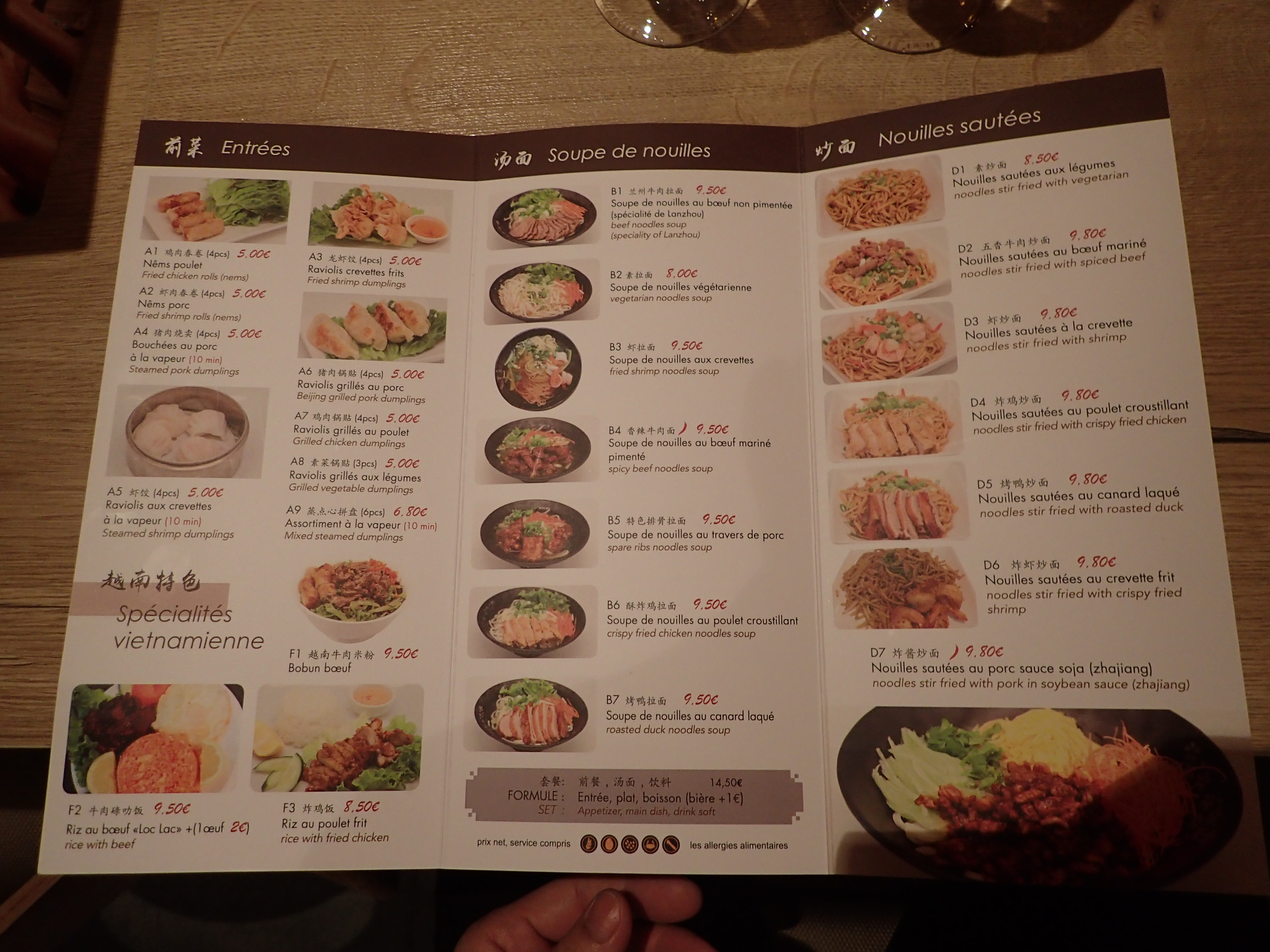 De très bonnes nouilles, mais si vous partez dîner ou si vous n'avez pas faim, avec un menu avec entrée et plat c'est parfaitement bien pour 2 personnes. Et ils coûtent 14,50 €.