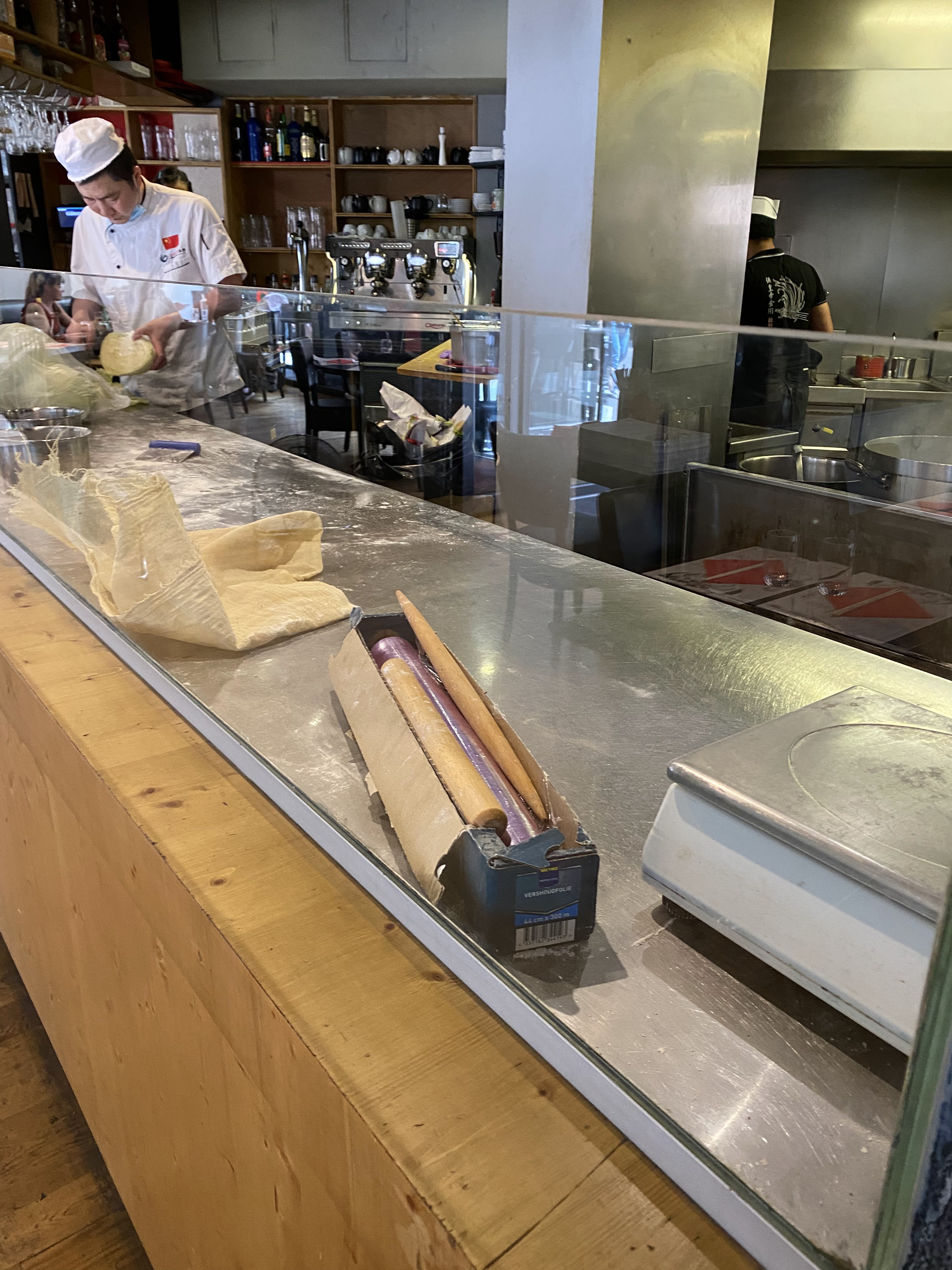 Très bon, service souriant et poli. Super de voir les cuisines et la réalisation des pâtes