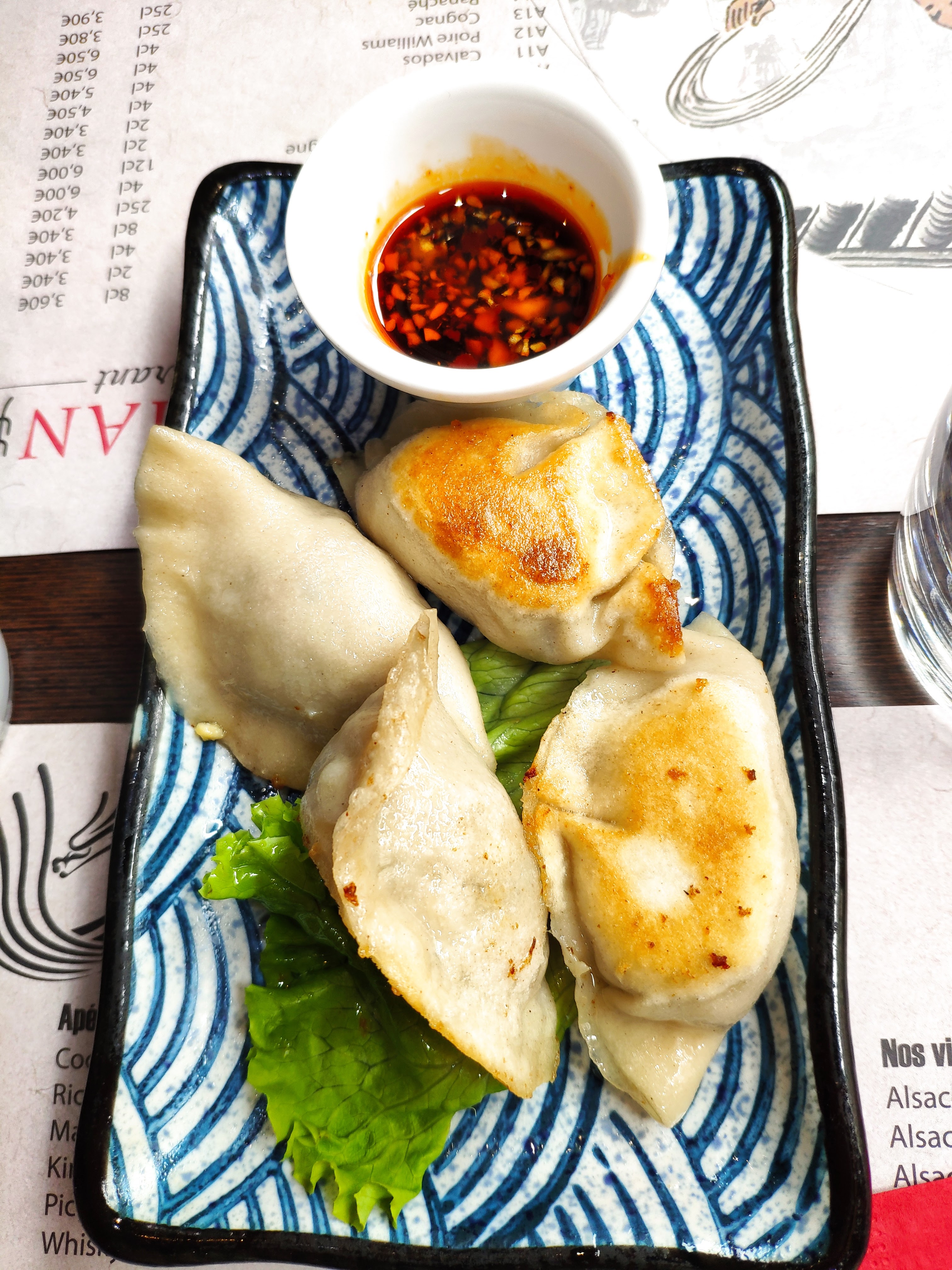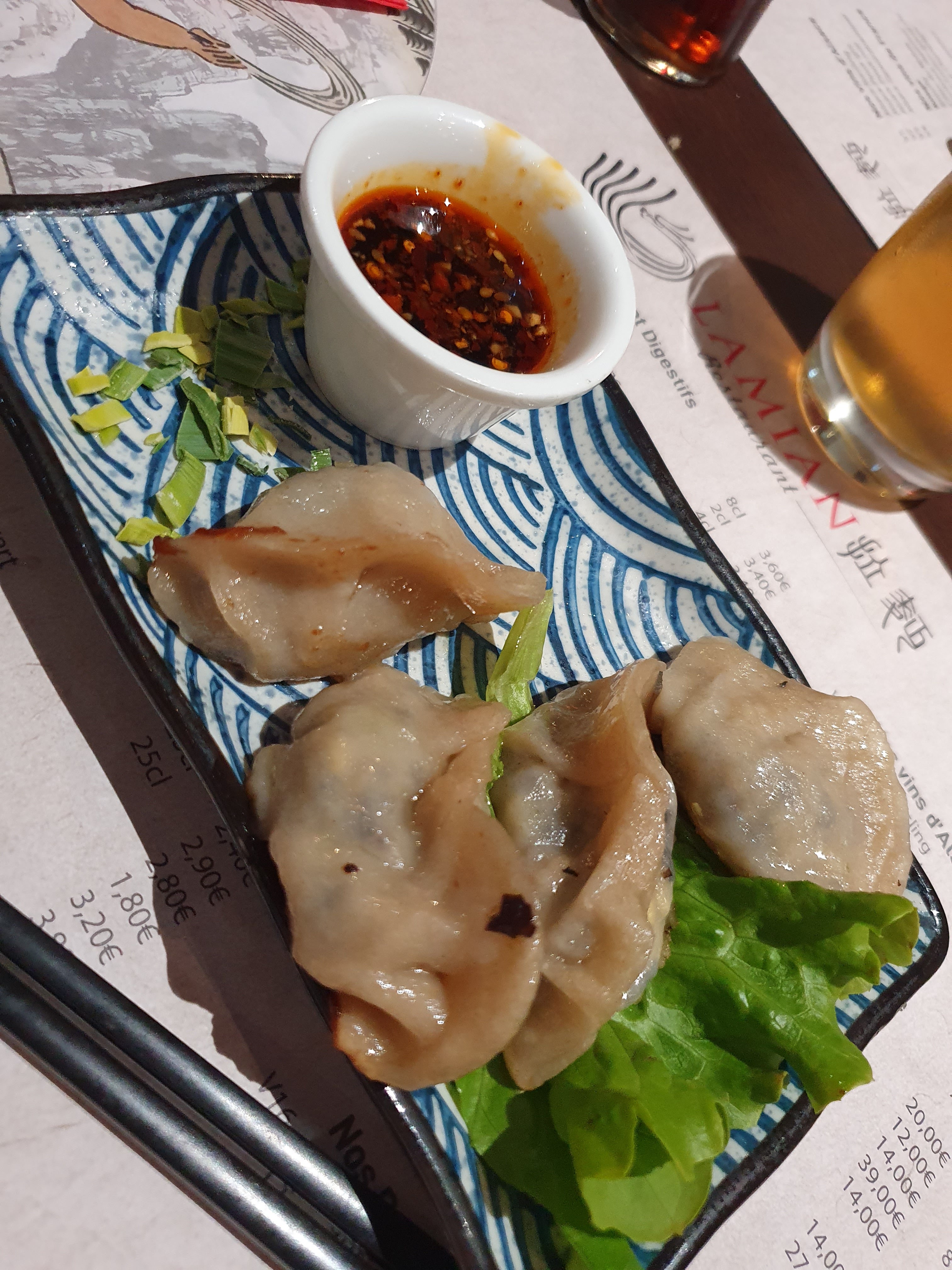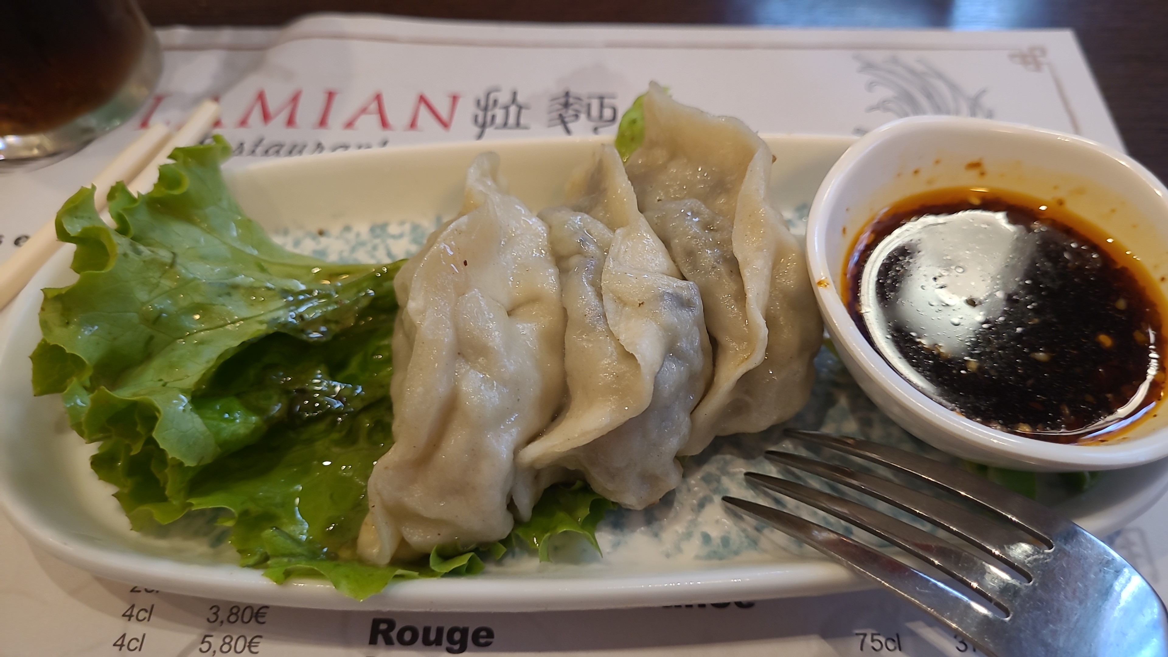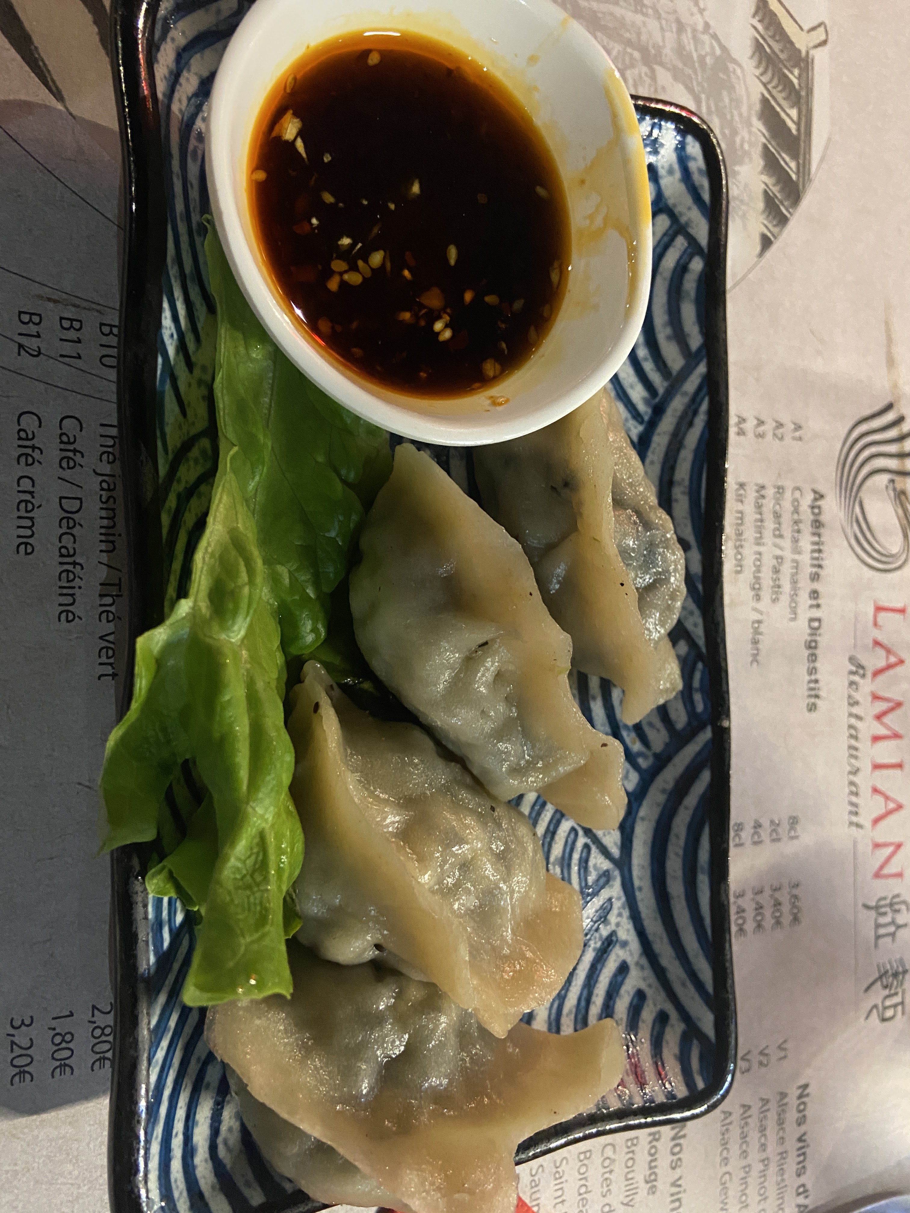 les nouilles maison sont vraiment excellentes !! Premier et meilleur gyoza/raviolis que j'ai mangé 🤤 Par la même occasion j'ai découvert la racine de lotus, qui accompagnée de la sauce est très bonne ;)