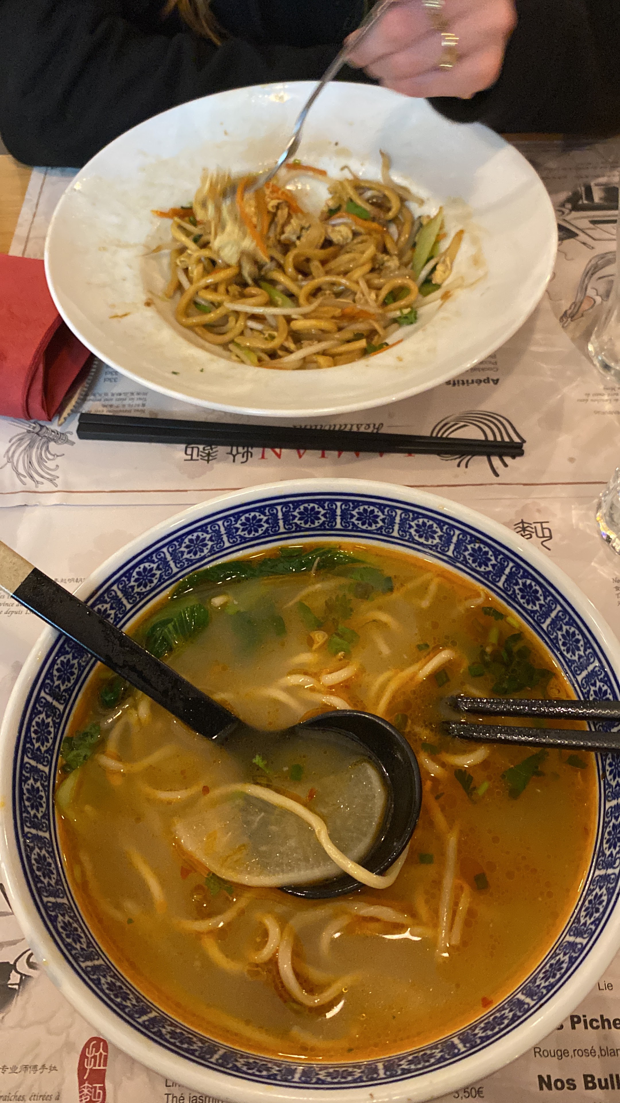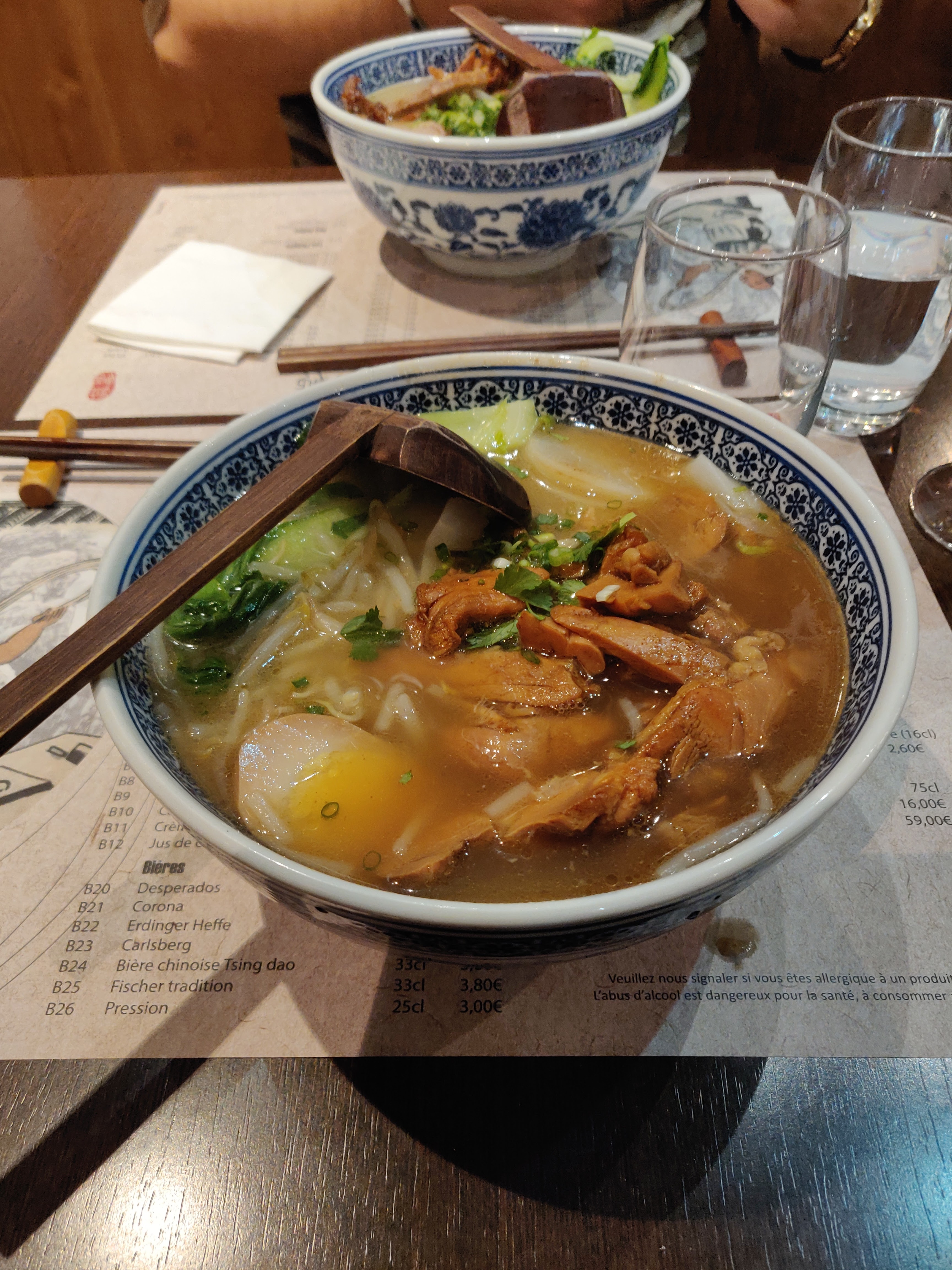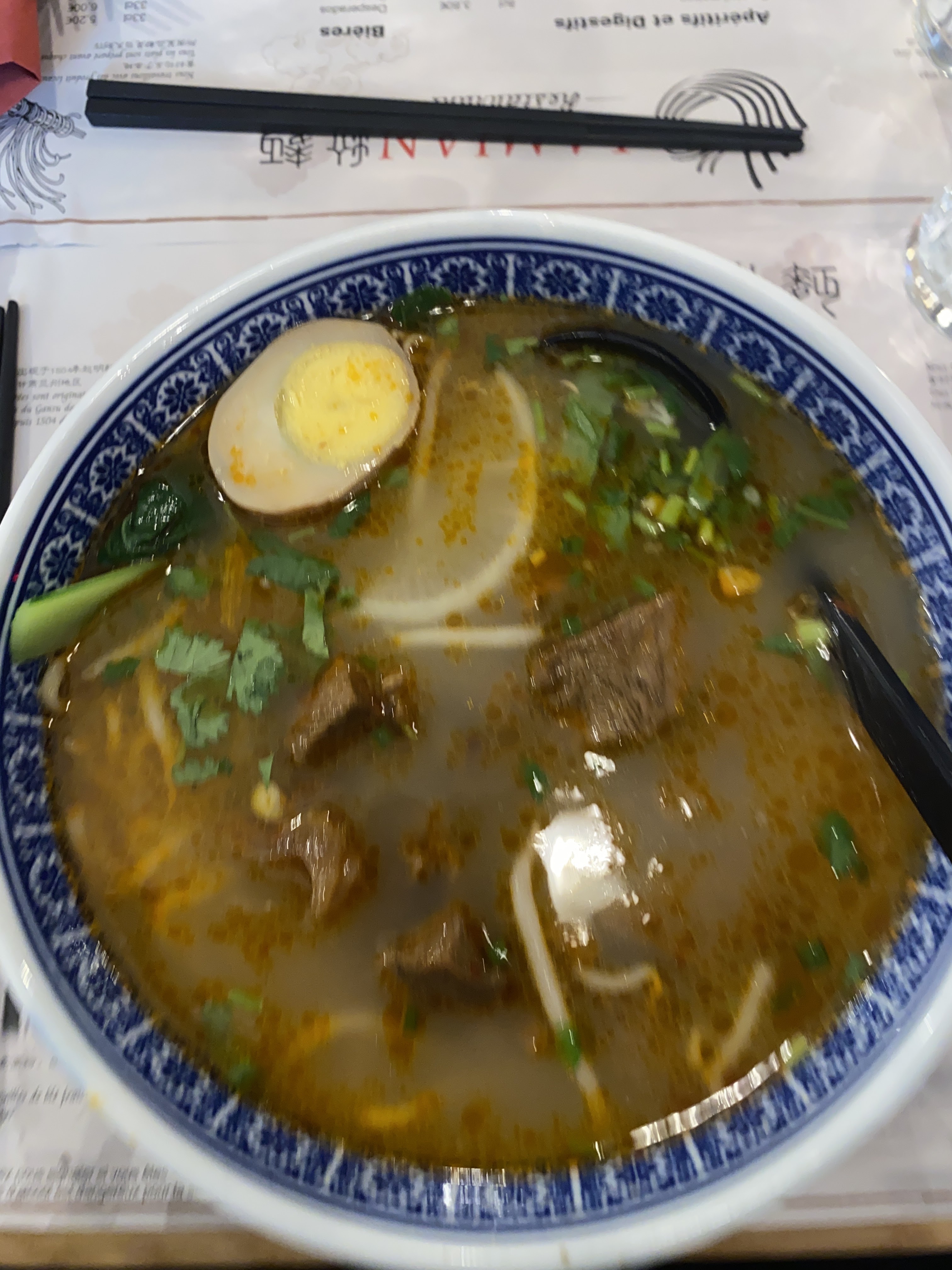 Bon restaurant asiatique Les nouilles sont excellentes, le bouillon manque un peu de goût. Je recommande le canard laqué !