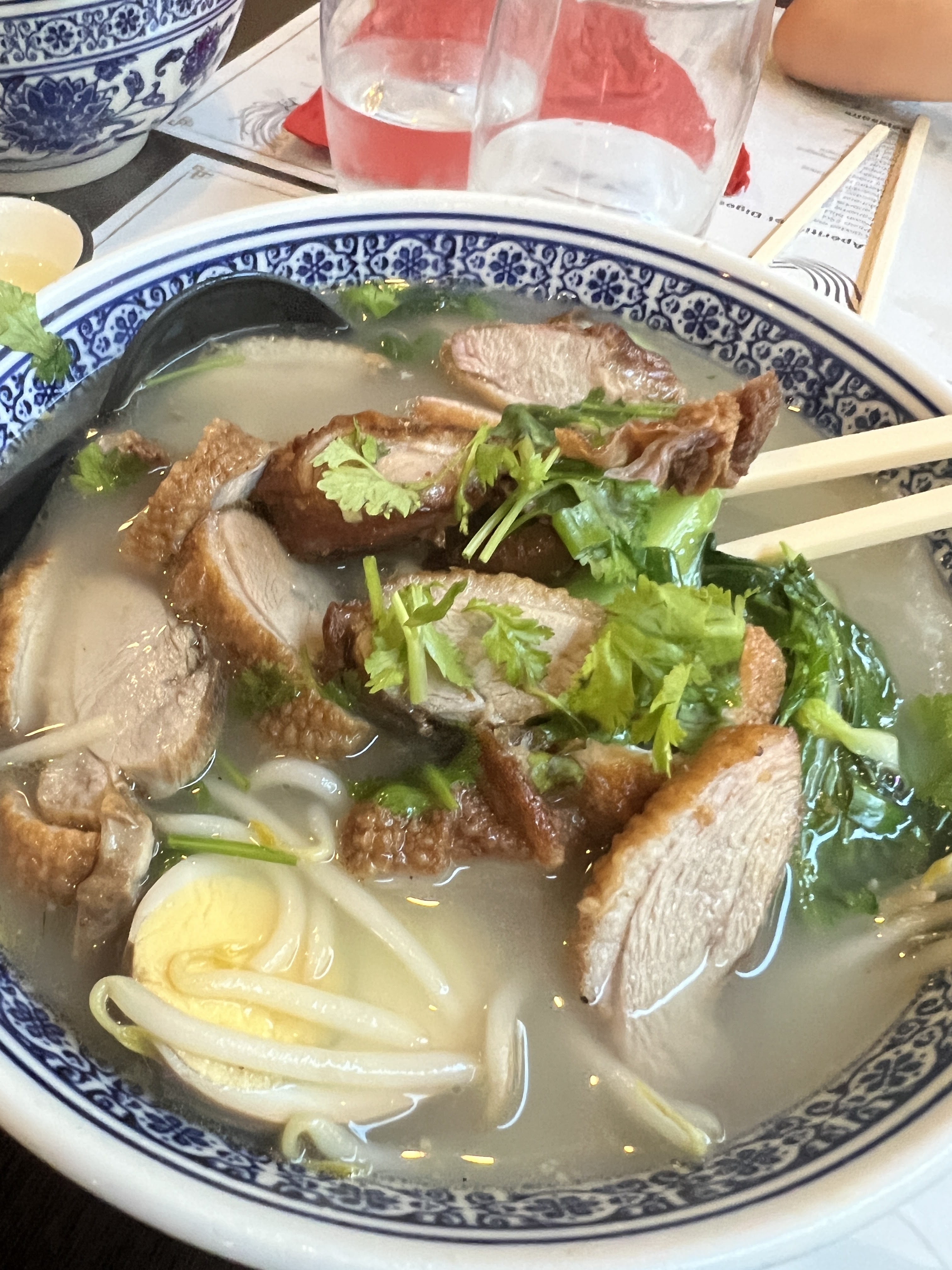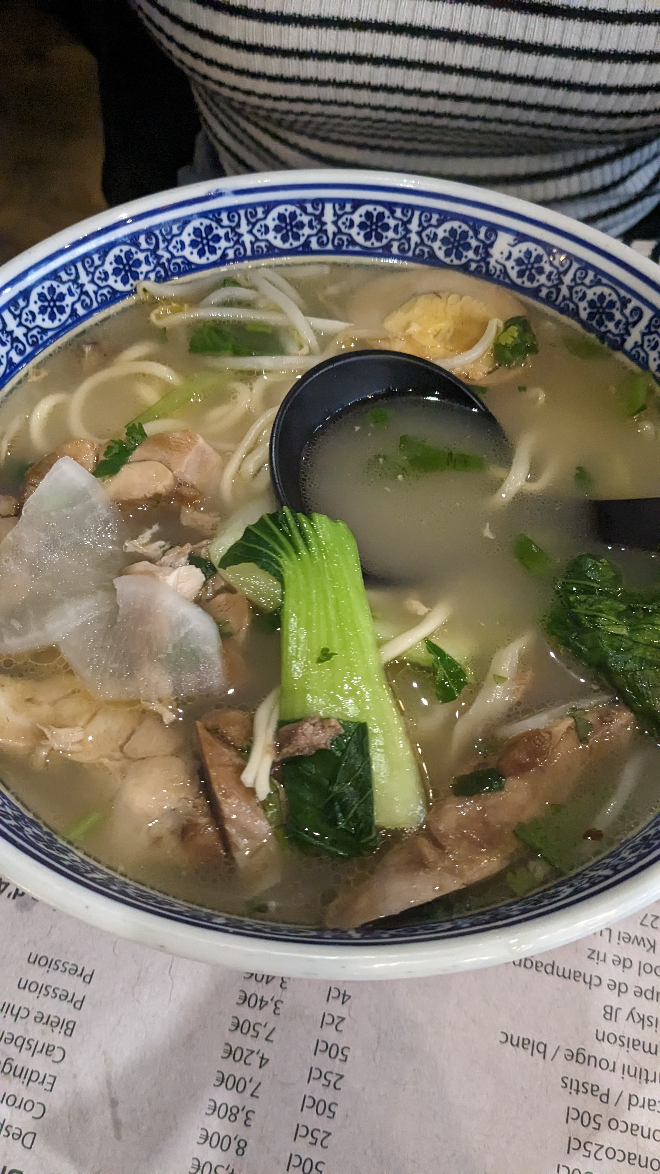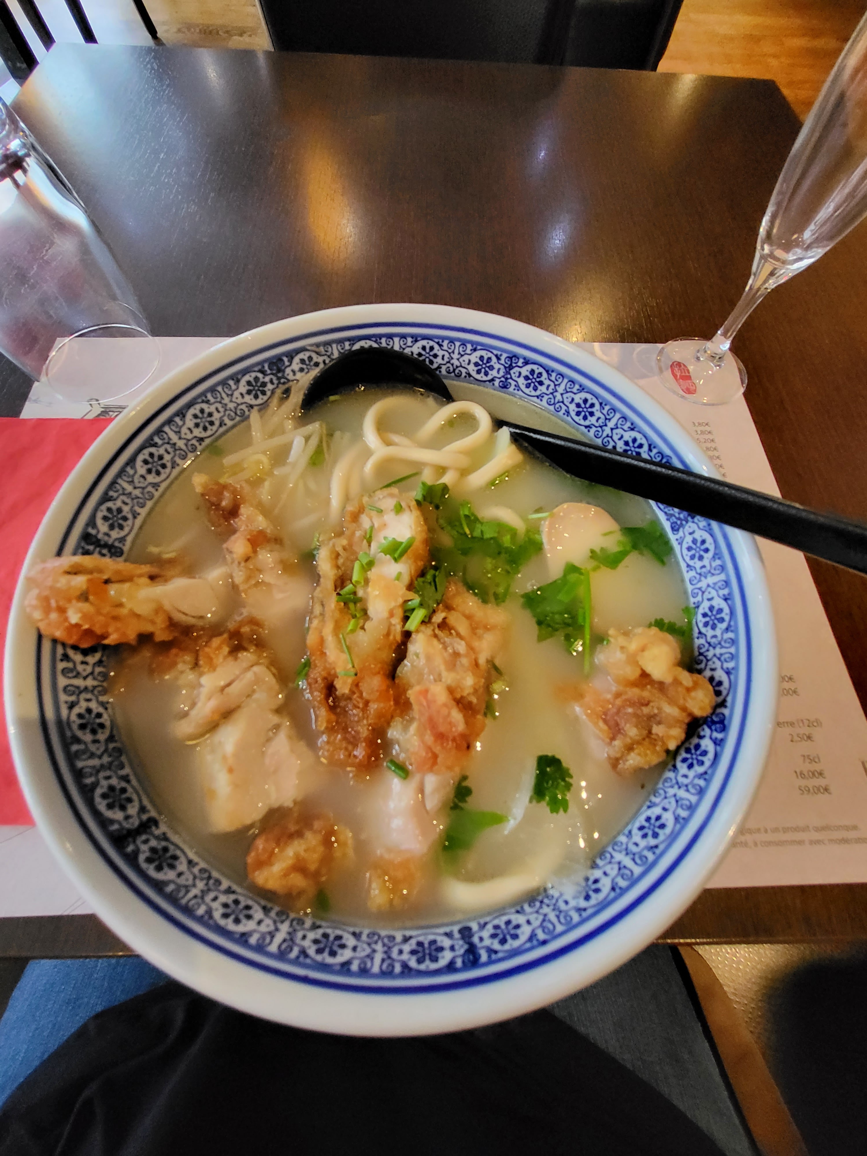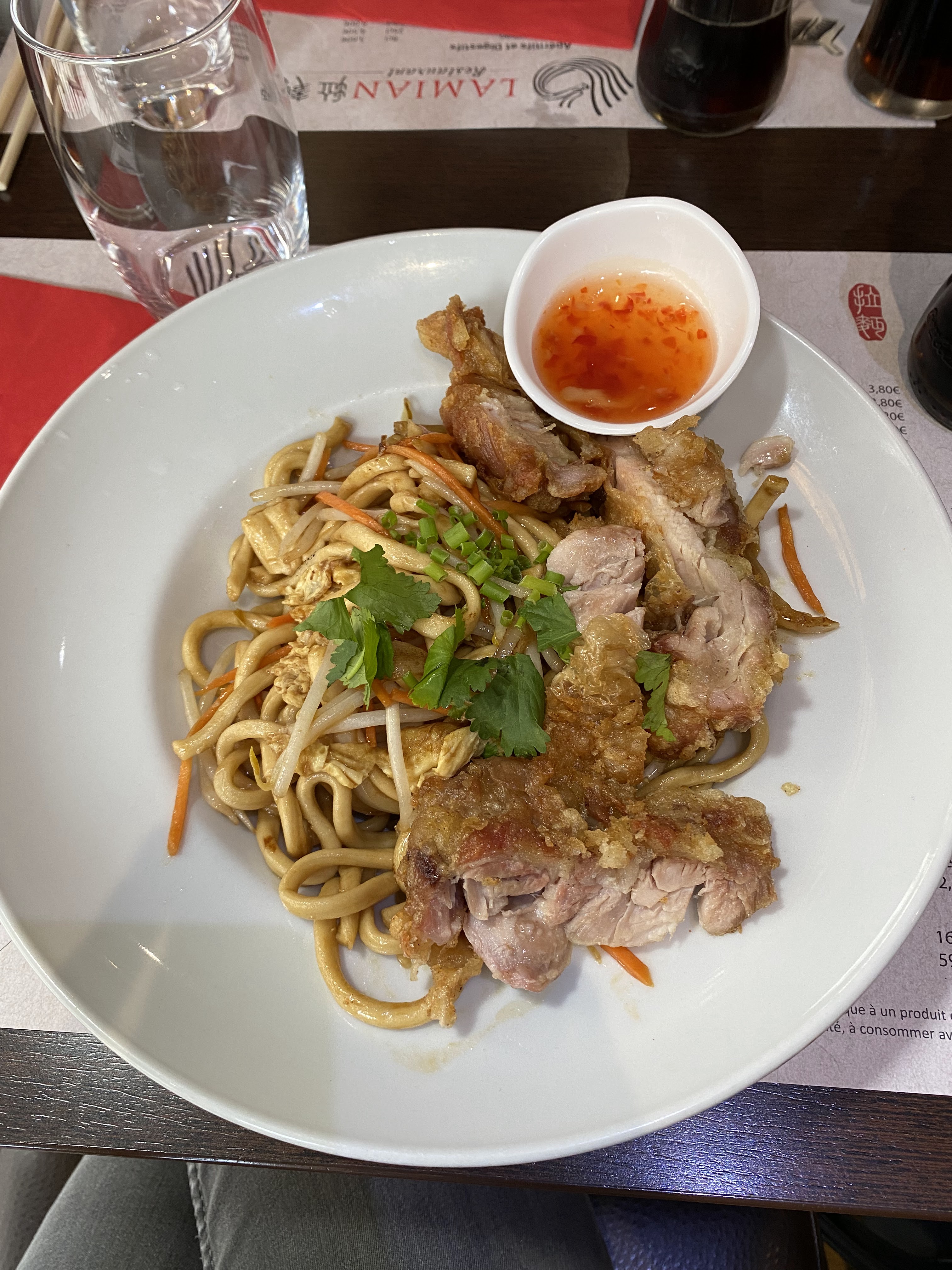 Bon restaurant asiatique Les nouilles sont excellentes, le bouillon manque un peu de goût. Je recommande le canard laqué !