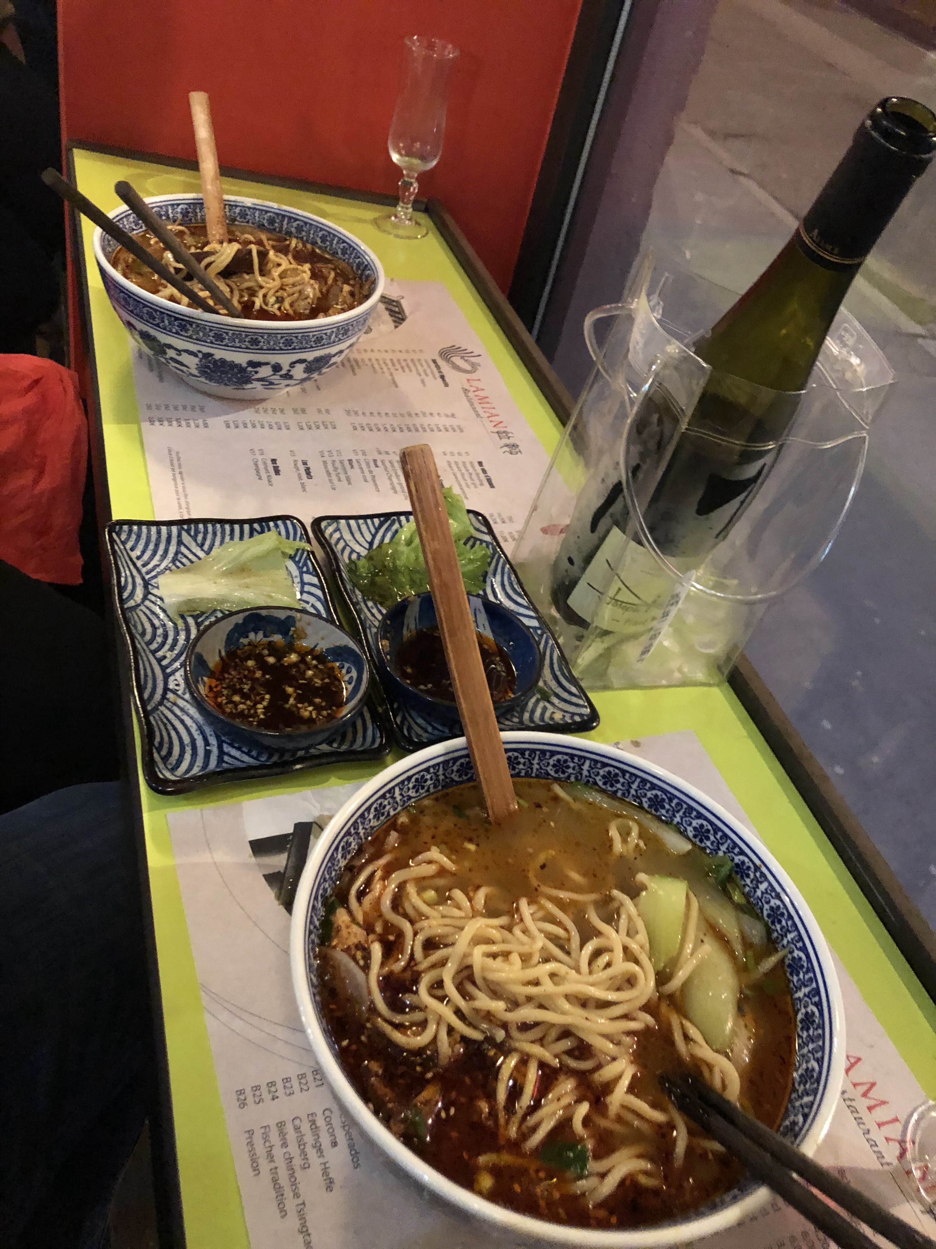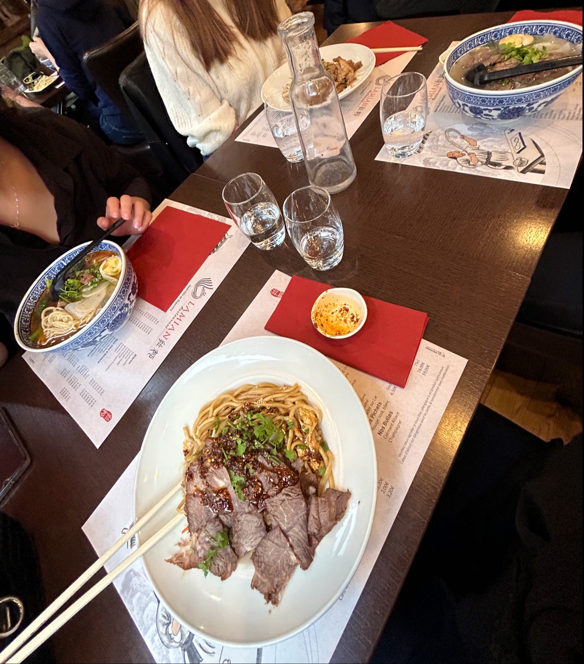 Alors très bonne ambiance, la nourriture est fantastique et vraiment c’est un restaurant à faire si vous aimez les nouilles. Par contre je recommande d’éviter d’arriver après 21h50, le serveur qui nous a accueilli nous a bien fait comprendre que c’était vraiment pas sympa de notre part d’arriver aussi tard. Aussi quand c’est écrit légèrement épicé, attendez vous que ça soit plus relevé que prévu pour les nouilles froides au bœuf. Sinon pour moi c’est une adresse à refaire et à recommander 😁.
