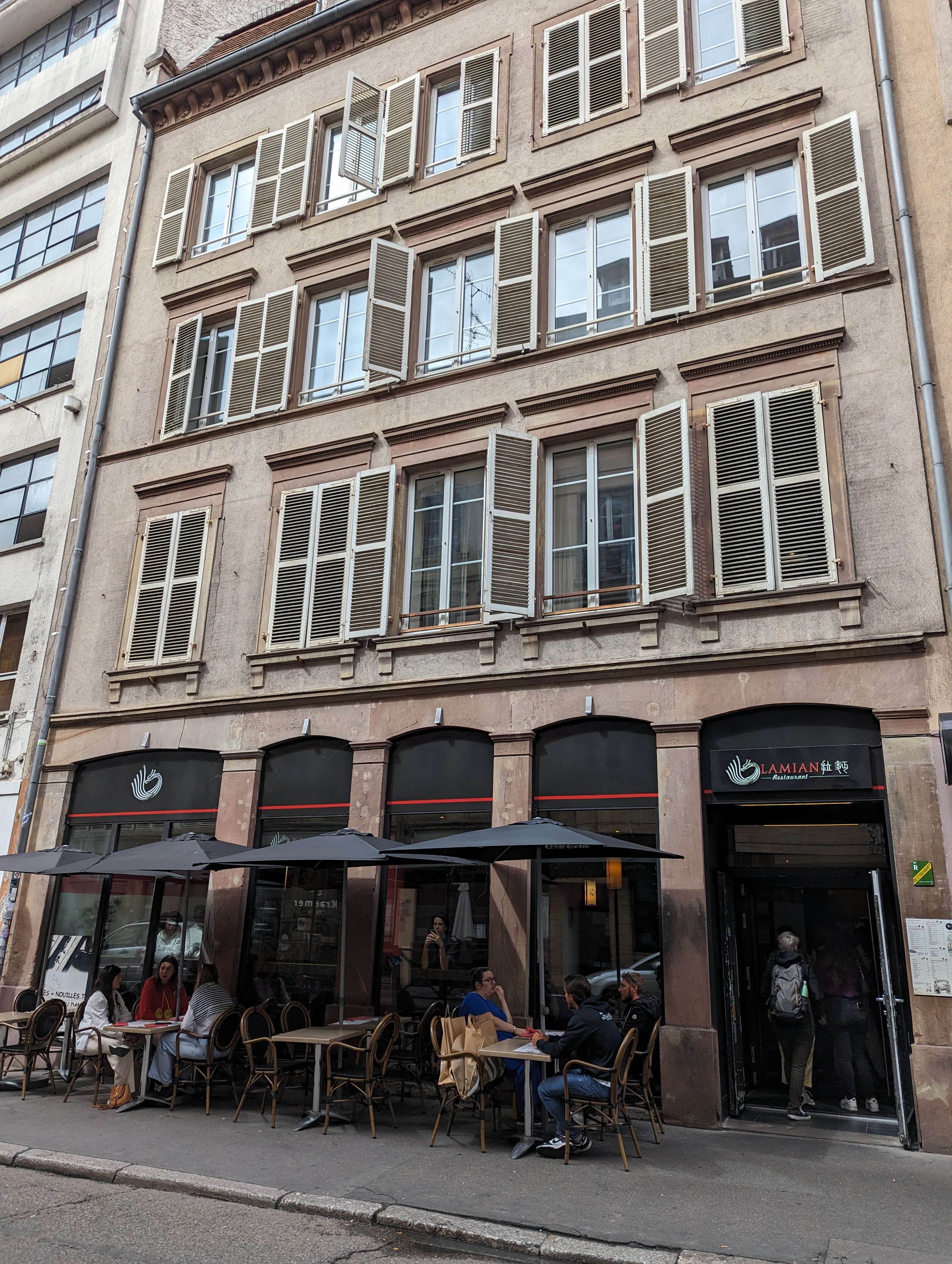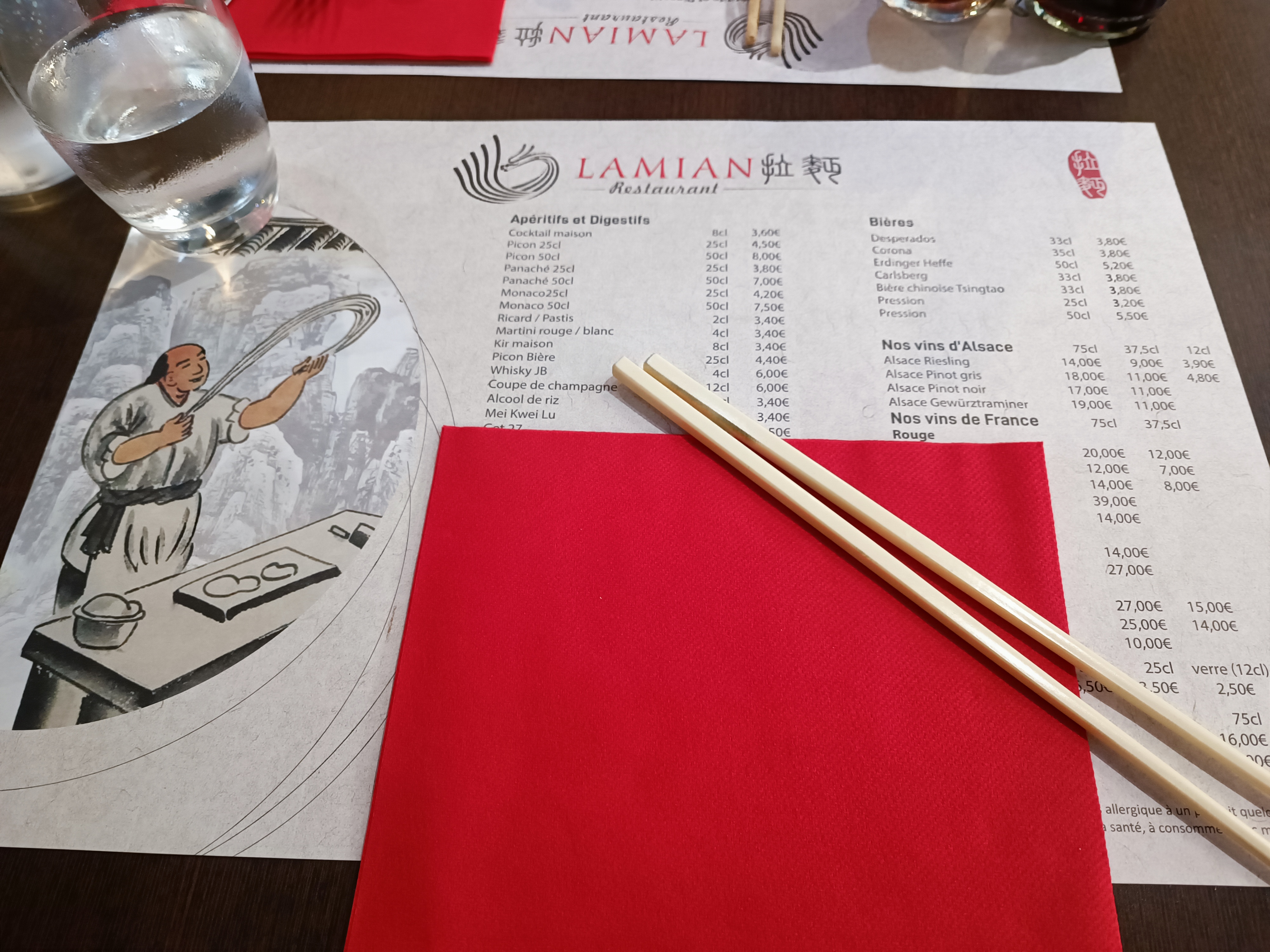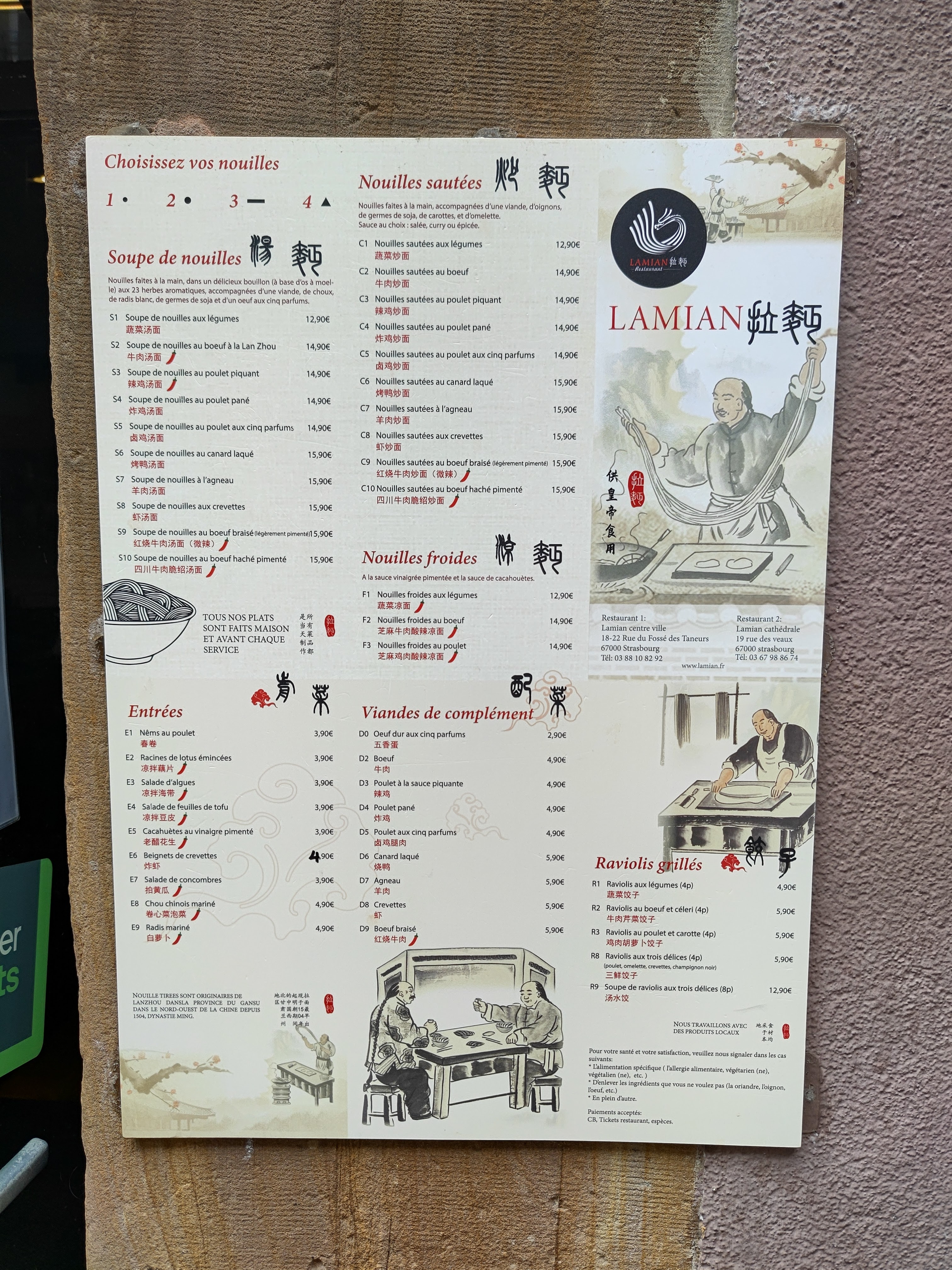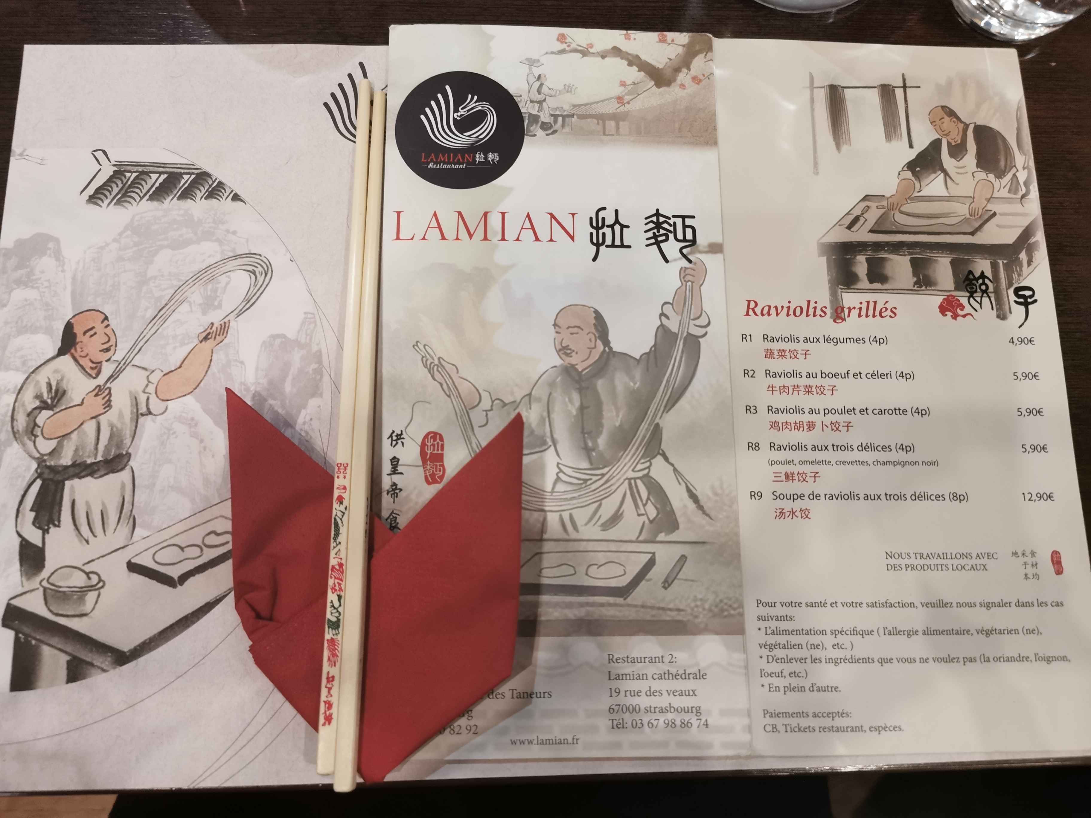 Si vous voulez manger un bon bol de soupe aux nouilles, oubliez toutes les adresses à strasbourg et dirigez vous vers Lamian. Les pâtes sont faites maison, devant vos yeux et les plats sont très bons. Je vous conseille la soupe de nouilles au bœuf, top!