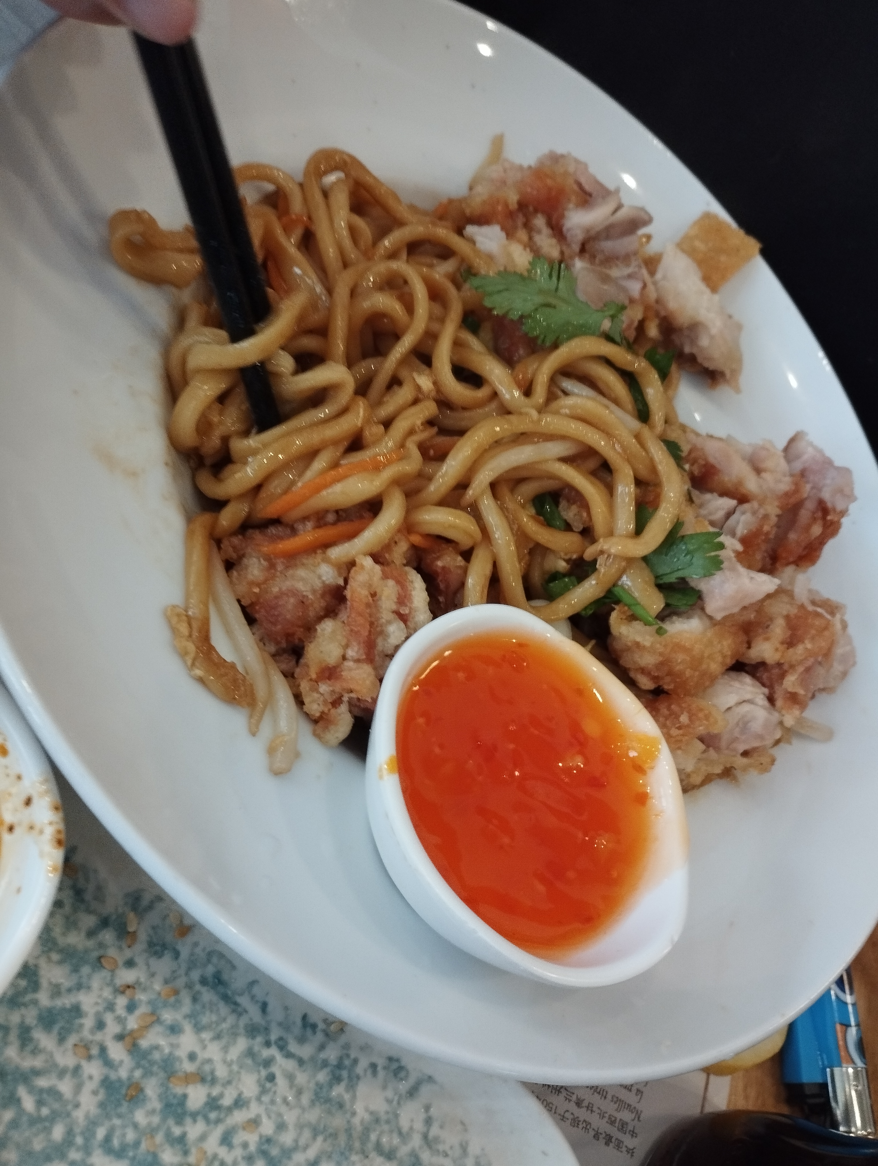 Je pense que ce n'est pas une cuisine à laquelle je m'attendais. Les nouilles étaient très bonnes mais le poulet ne m'a pas plu. Des morceaux non identifiables et bouillis, ce n'est pas ma tasse de thé.... Le service par ailleurs est super sympa. L'ambiance bruyante mais si on aime l'esprit un peu cantine c'est parfait.