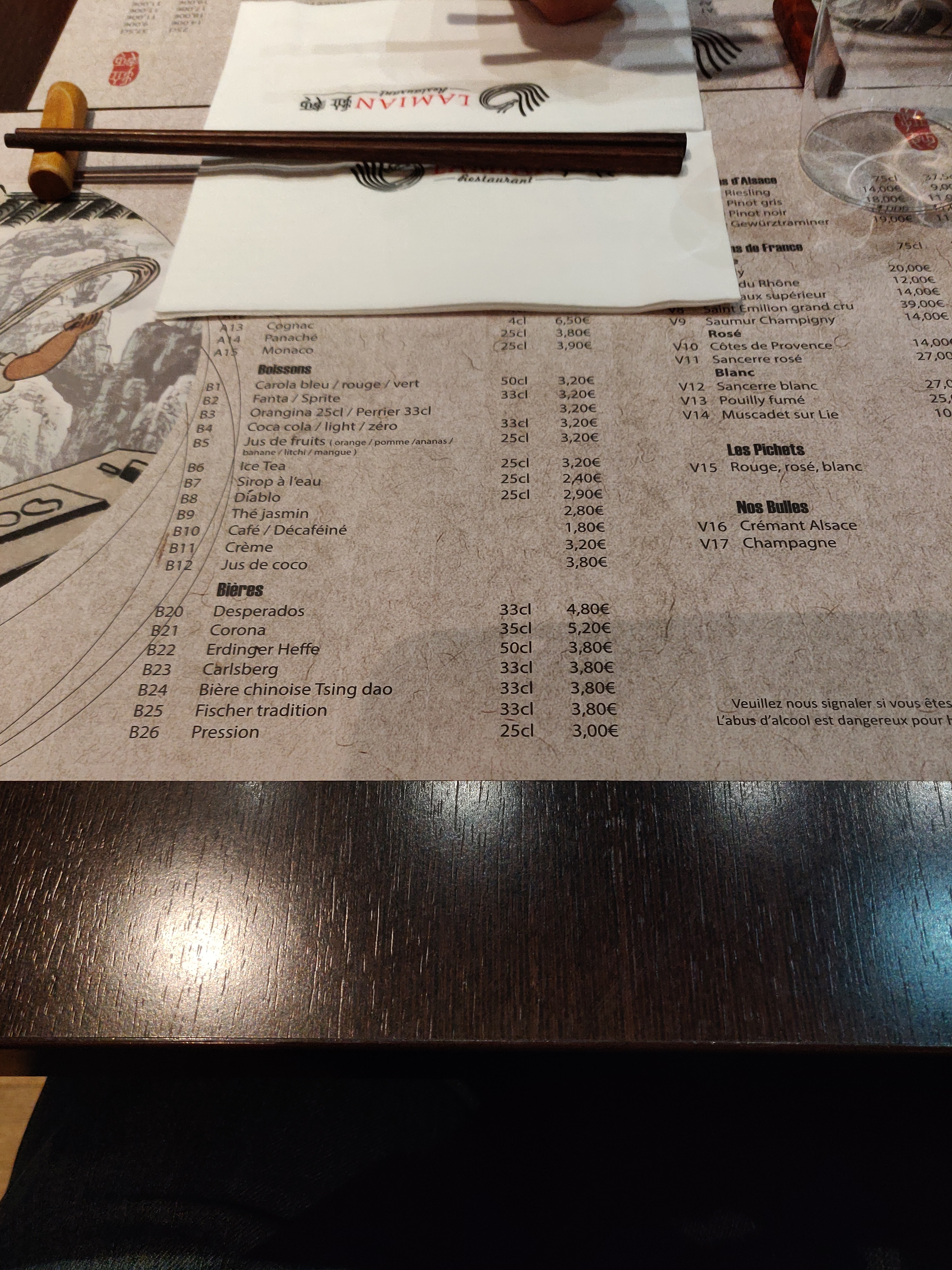 Très bonne expérience dans ce restaurant! Nous avons pris les soupes de nouilles aux légumes (12,90€), le bol était généreux et les nouilles délicieuses ! Nous recommandons :)