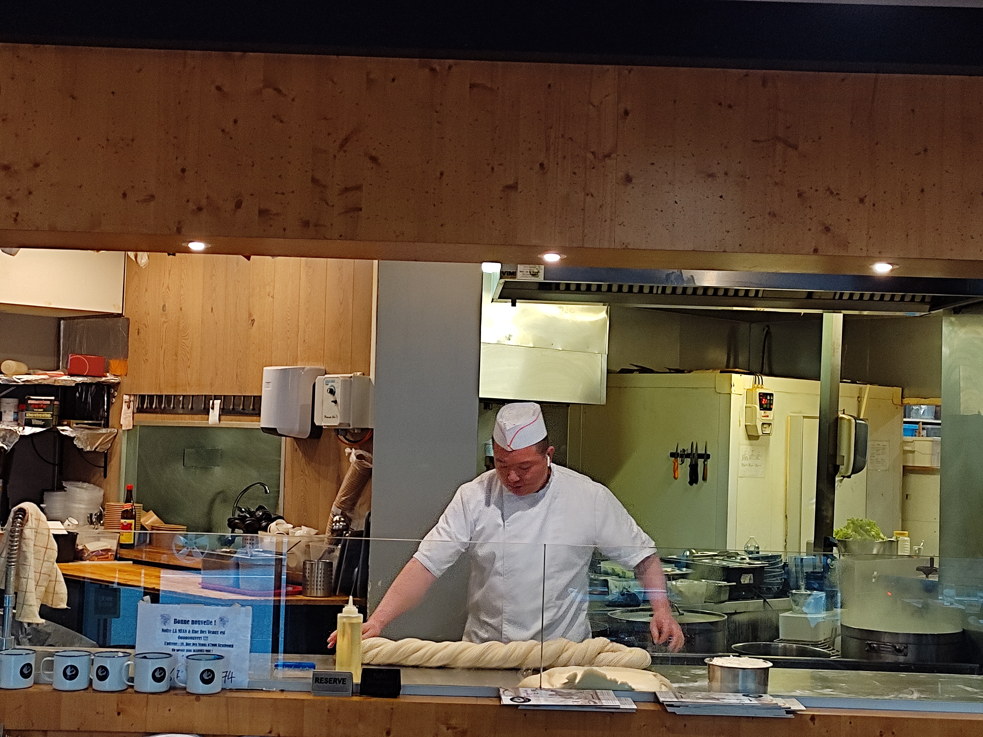 Ambiance conviviale. Les bouillons sont juste délicieux. De notre table, on voit le cuisinier qui fait les nouilles à la main..