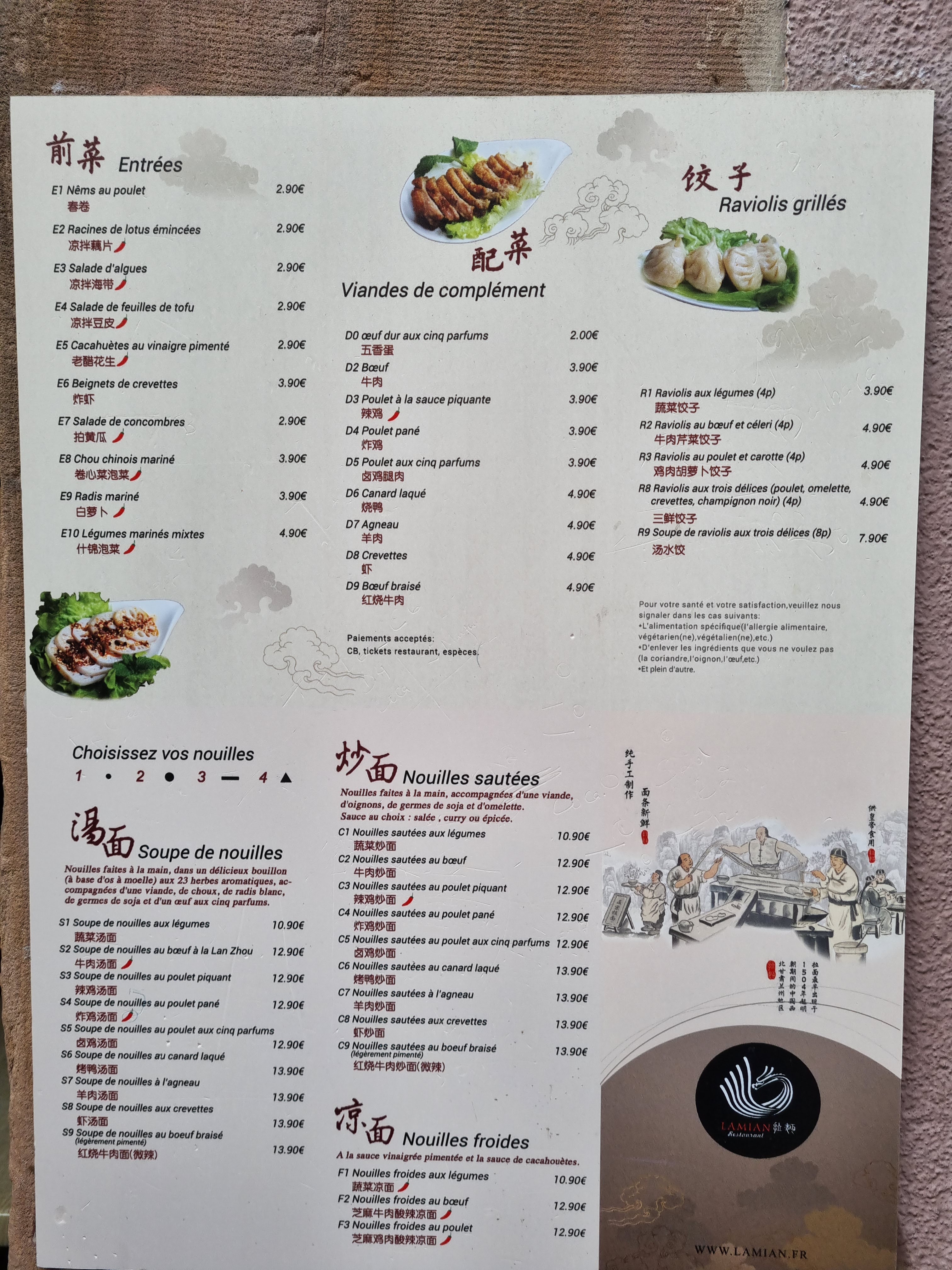 Un mot : EXCELLENT ! Nous decouvrions ce restaurant le vendredi, nous y étions deja de retour le samedi ! Personnel compétent et sympathique, cuisine fraiche et delicieuse, super rapport qualité prix ! Le Lamian est devenue mon adresse n°1 !
