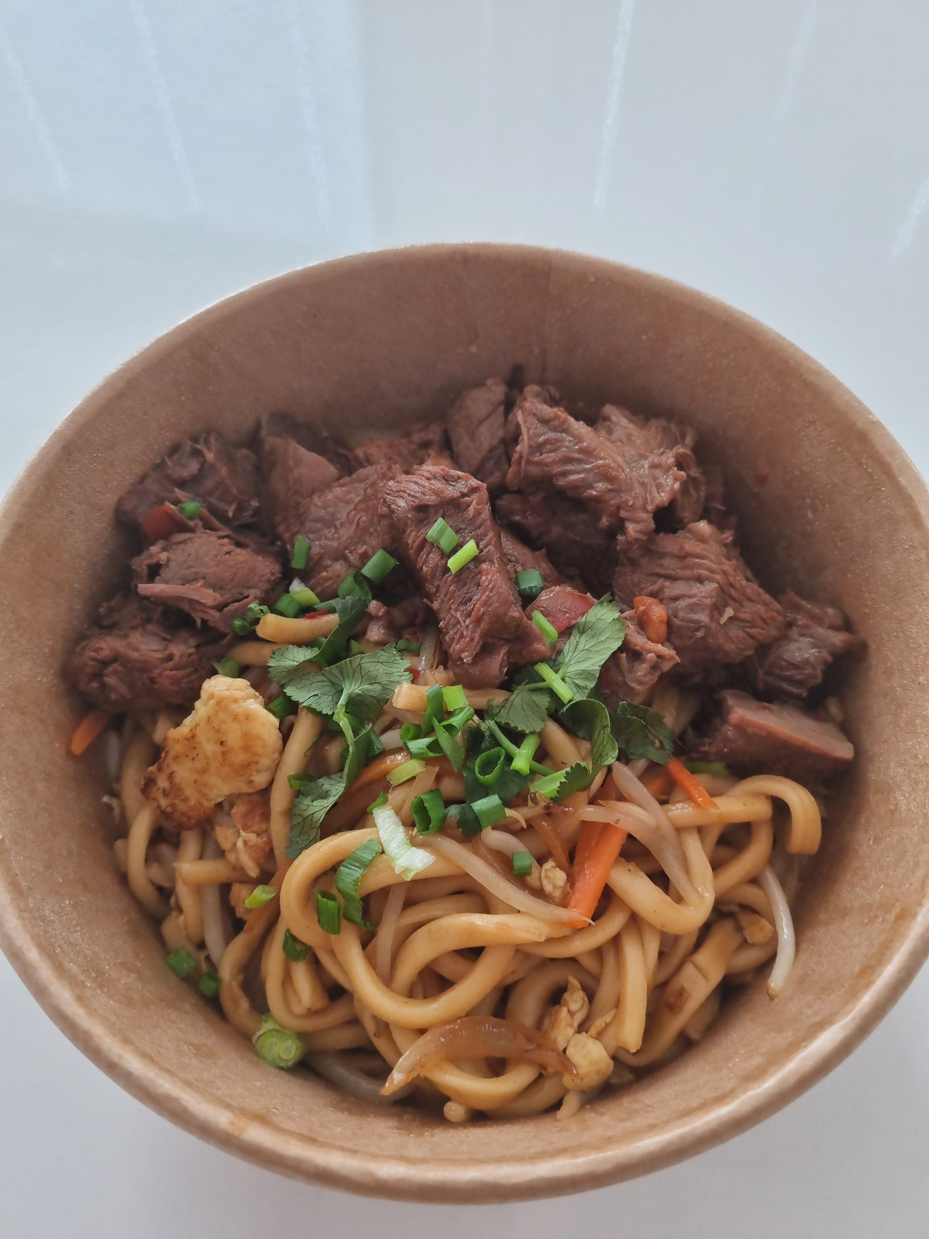 A ne pas manquer ces saveurs d'Asie pour une bonne pause voyage le temps d'un repas sur le pouce!🌎 Les nouilles sont faites maison et on les voit faire, excellentes et succulentes nouilles fraîches 🍲! La viande font dans la bouche et le goût et les épices sont là! Commandez en avance y'a du monde. Rapport qualité prix abordable et les barquettes sont bien remplies et chaudes grâce au conditionnement pratique pour manger dedans.