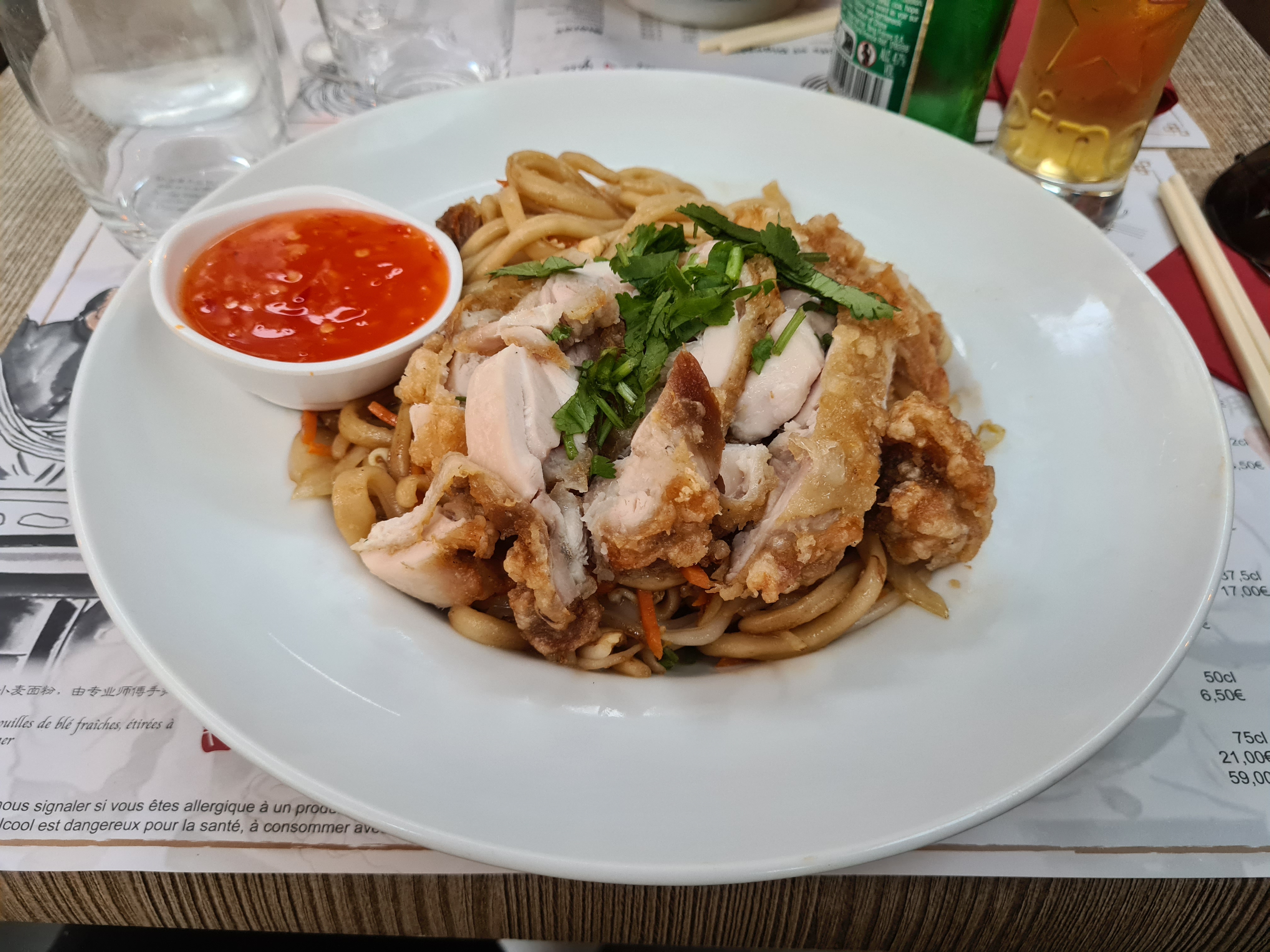 J’y suis allé le temps de midi. Pas mal de monde. On a dû attendre. Une fois à table, j’ai commandé des nouilles au poulet pané. Quelle déception une fois l’assiette servie. C’est très très gras. Le poulet est loin d’être des morceaux de qualités. Il n’est pas tendre. Je n’ai pas mangé le poulet. Tout beigne dans la graisse. Les nouilles ne sont pas mauvaises mais trop grasses. Concernant le personnel, quelle déception aussi. Pas agréable du tout. Au moment de payer quand on dit qu’on paye en espèce ou par ticket restaurant on nous fait bien comprendre que ça dérange et que la personne préférerait qu’on paye en carte bancaire. On paye quand même en espère. Ça a l’air d’être un compliqué. La personne ne sait même pas rendre la monnaie correctement. Elle ne prend pas le temps de faire ça bien car on voit que ça la dérange. On m’avait recommandé cette adresse. Mais au final ça sera une déception du début à la fin.
