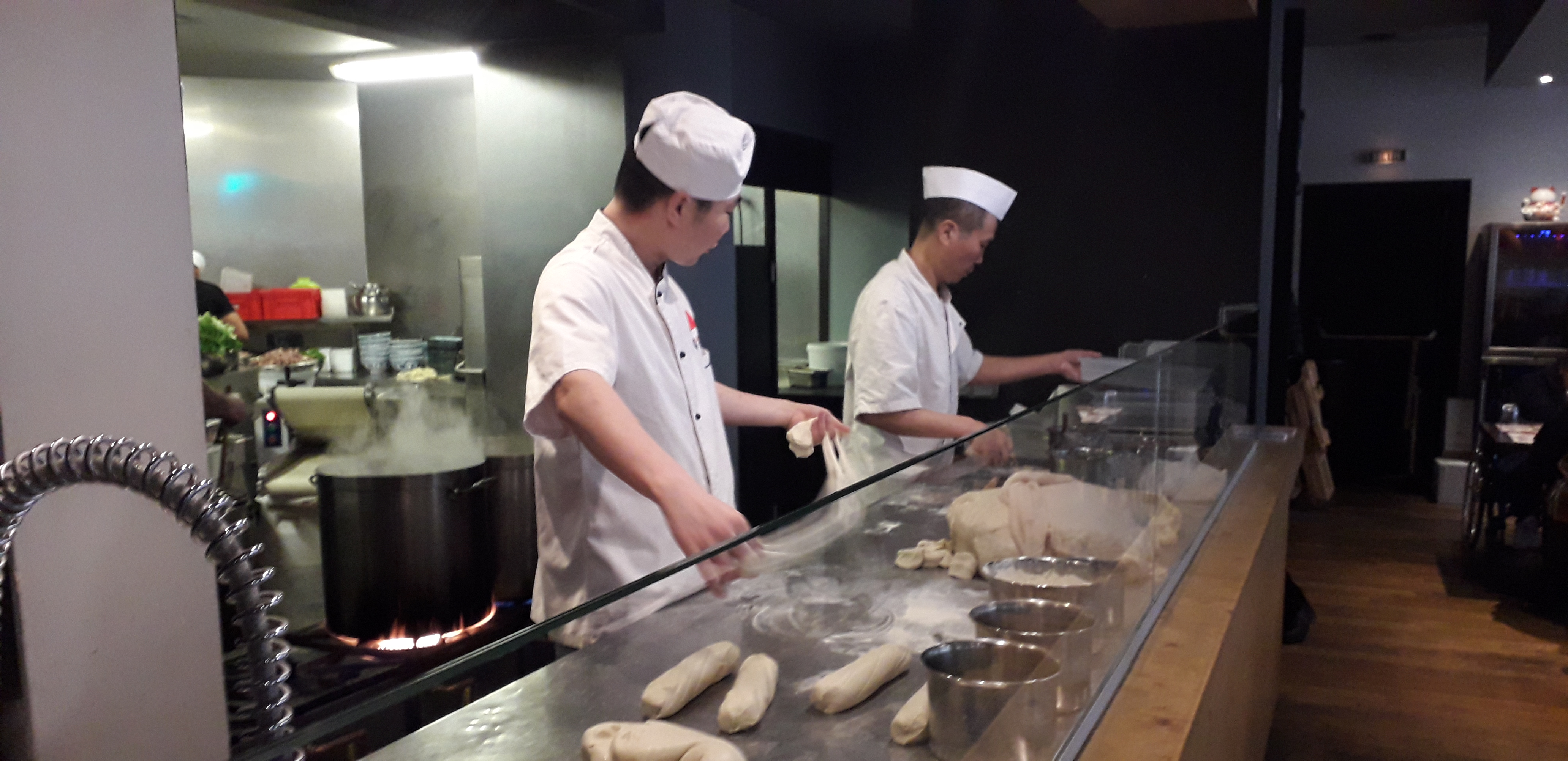 Les nouilles sautées sont fabriquées à la demande par le chef chinois qui les fait devant la salle et ça fait du bruit quand il tape la pâte sur son plan de travail. Je vous conseille les nouilles aux crevettes ou au poulet piquant, ainsi que les entrées qui réjouiront vos papilles telles que les raviolis ou les crevettes frits. Il faut réserver pour être certain d'avoir une table, car ce restaurant à beaucoup de succès.