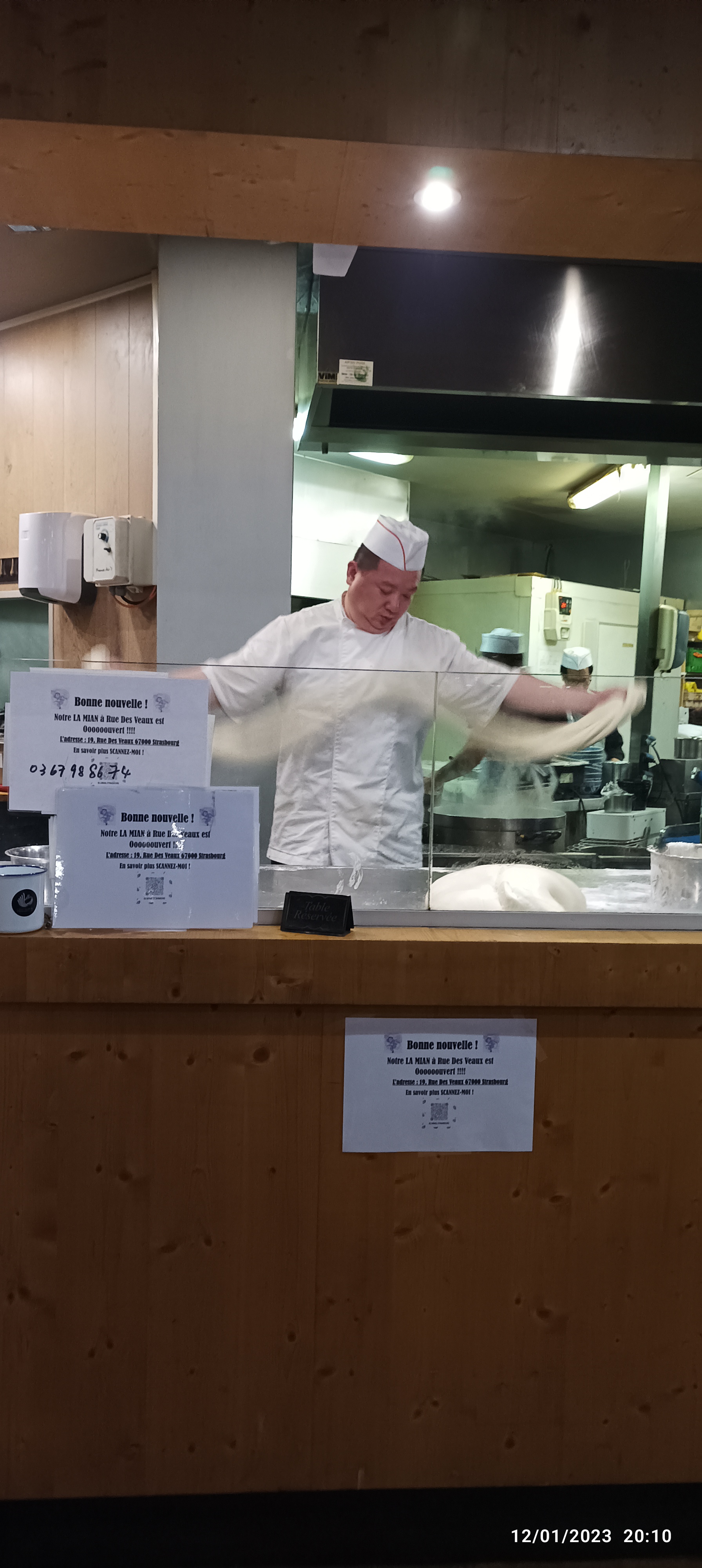 Nous y sommes allés en famille, l'expérience fut formidable. Service très sympa. Bonne ambiance avec vue sur le cuisinier qui réalise les nouilles en direct. Son coup de main est impressionnant, ça a l'air tellement simple. Et la nourriture est tout simplement délicieuse. Nous avons testés des entrées, des raviolis et des soupes de nouilles tout était très bon. Les soupes sont très copieuses.