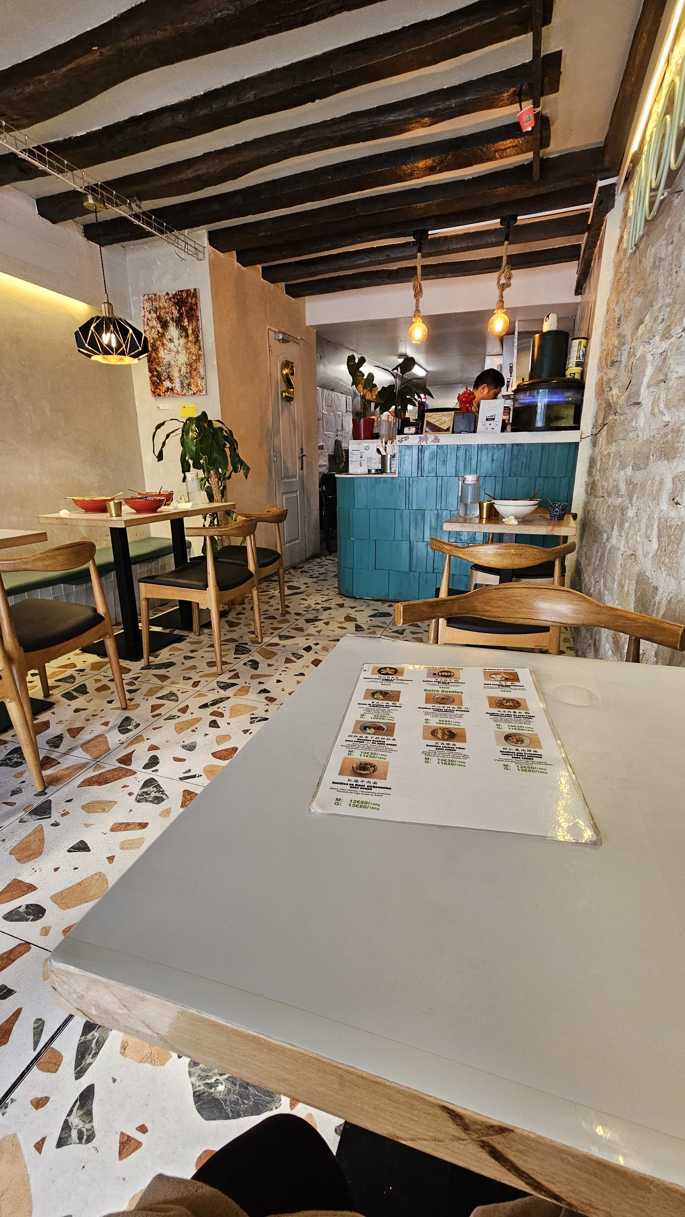 Un coup de cœur ! Des prix très intéressants : 6€ le menu enfant, 9€80 le menu végétarien 🌱 et 12€ le menu non végétarien. Les plats végétariens sont très bons ! Lors de ma venue, les bao n’étaient pas végétariens. Vous pouvez demander des modifications dans les plats, notamment par rapport aux arachides. Le lieu et l’ambiance sont très agréables.