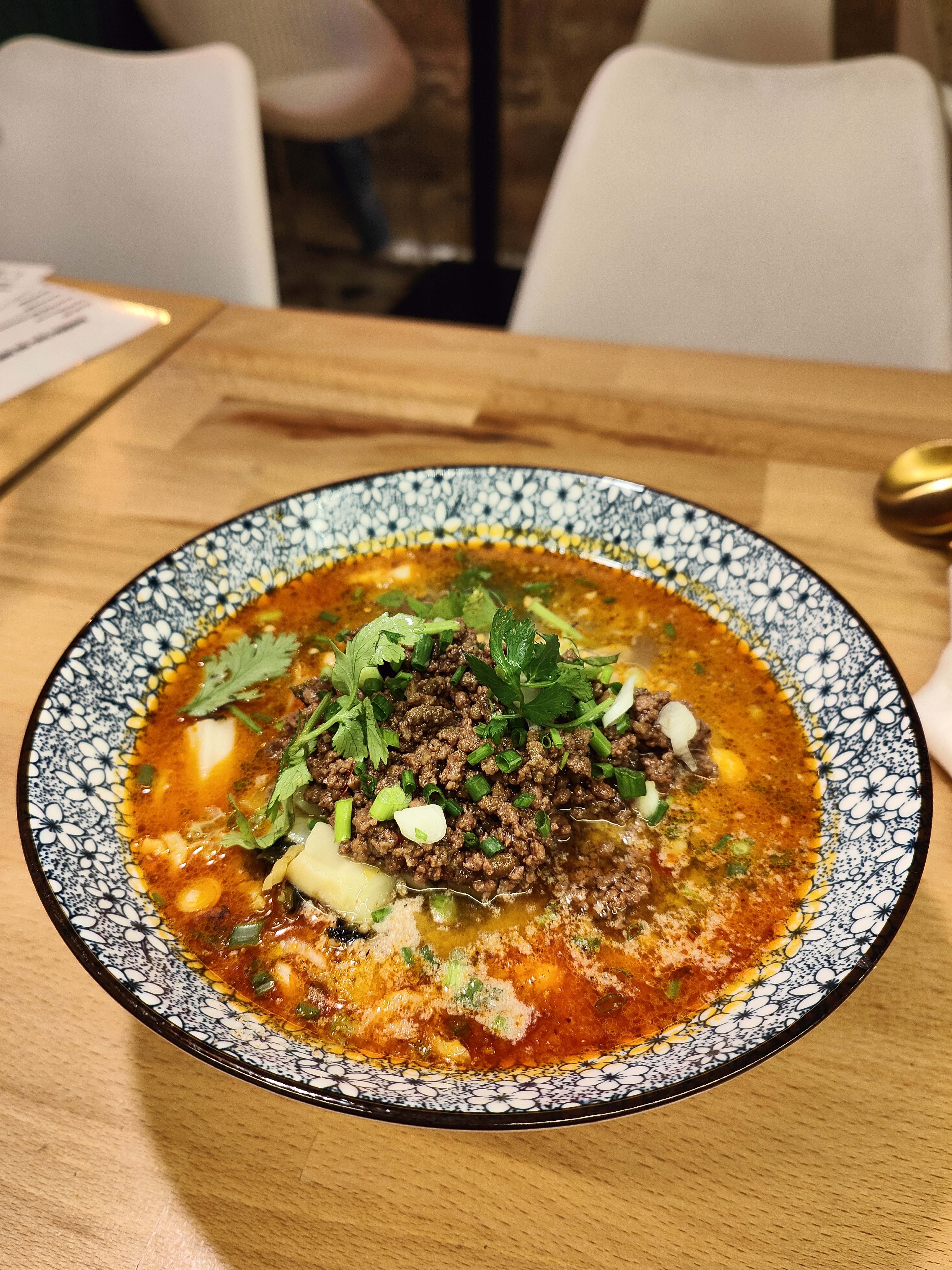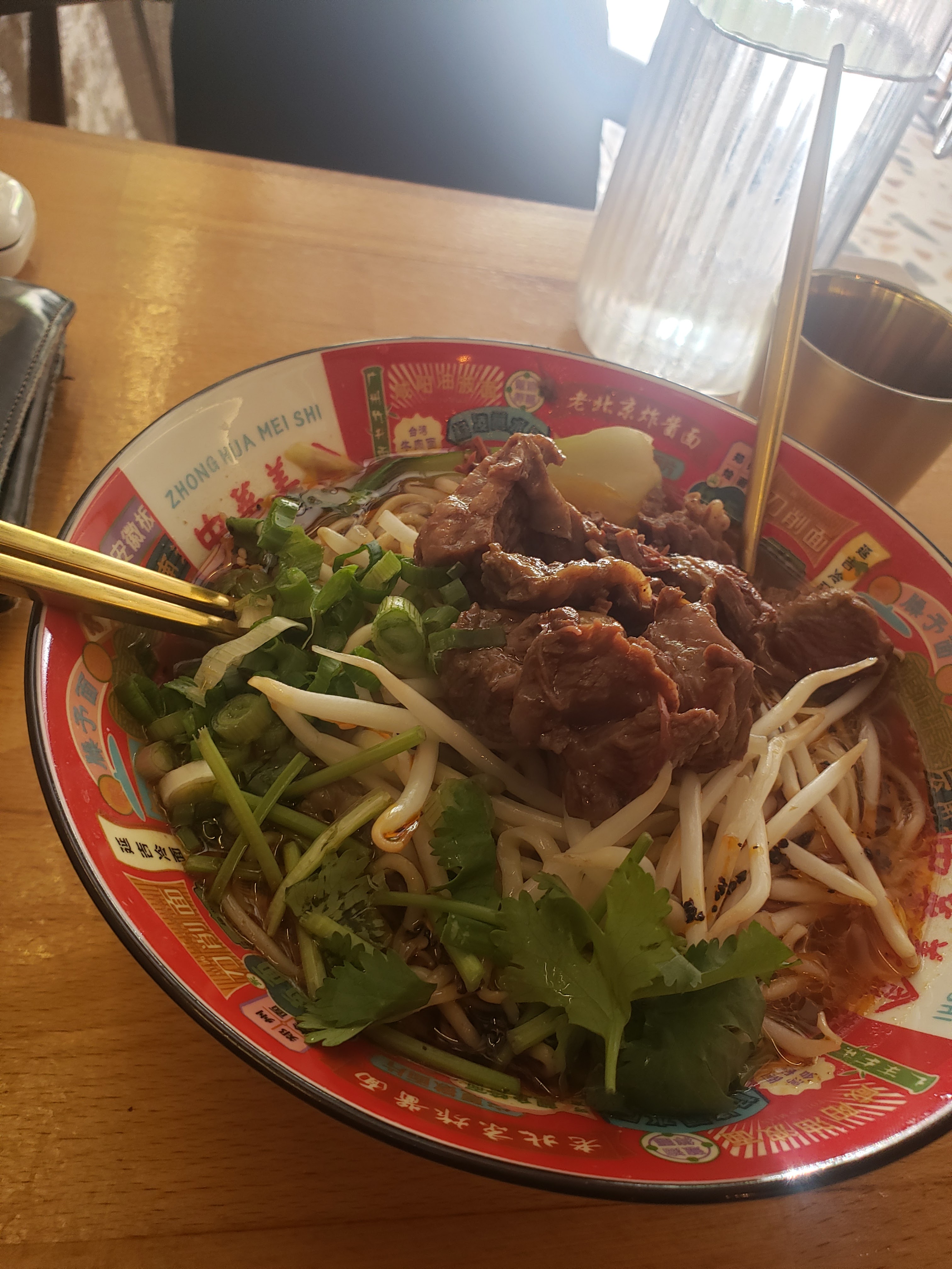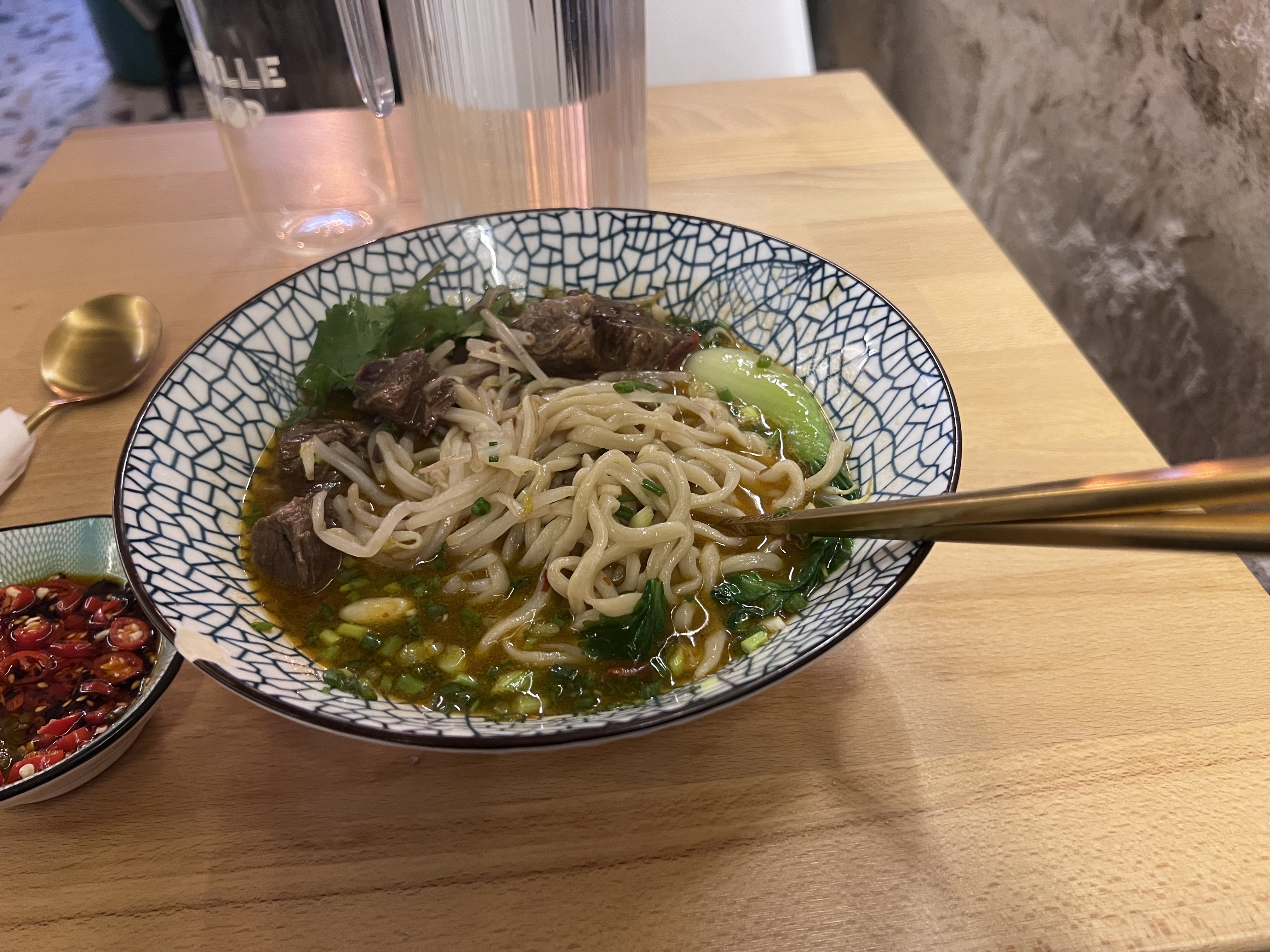 L'une des meilleurs adresses de nouilles chinoises que j'ai testé jusqu'à présent, ils viennent de l'ouest de la Chine et sont ouverts depuis quelques mois Déjà, le boeuf haché était tendre et super bon, c'était frais, bien cuisiné La soupe était trop bonne (je recommande de prendre avec), ça m'a marqué Le personnel est super sympa ! Et très bon rapport qualité-prix ! À découvrir sans plus tarder ! Je reviendrai 🥰