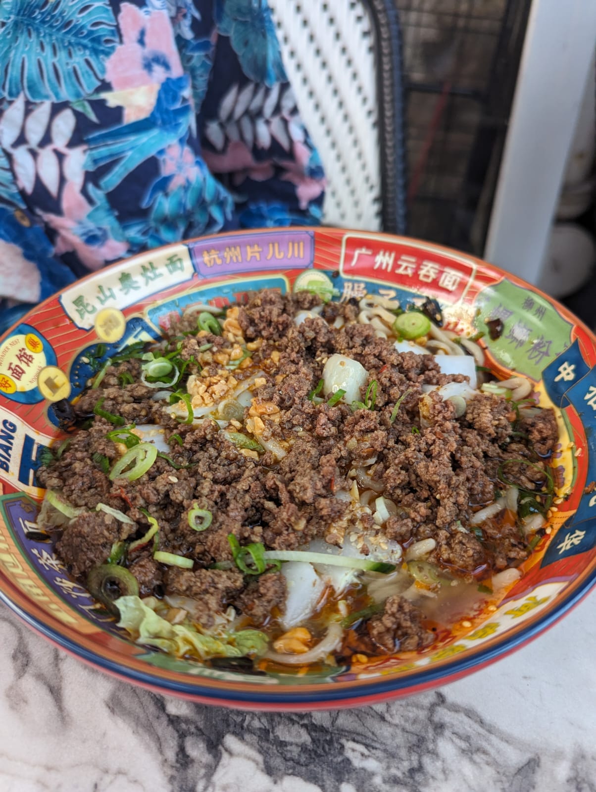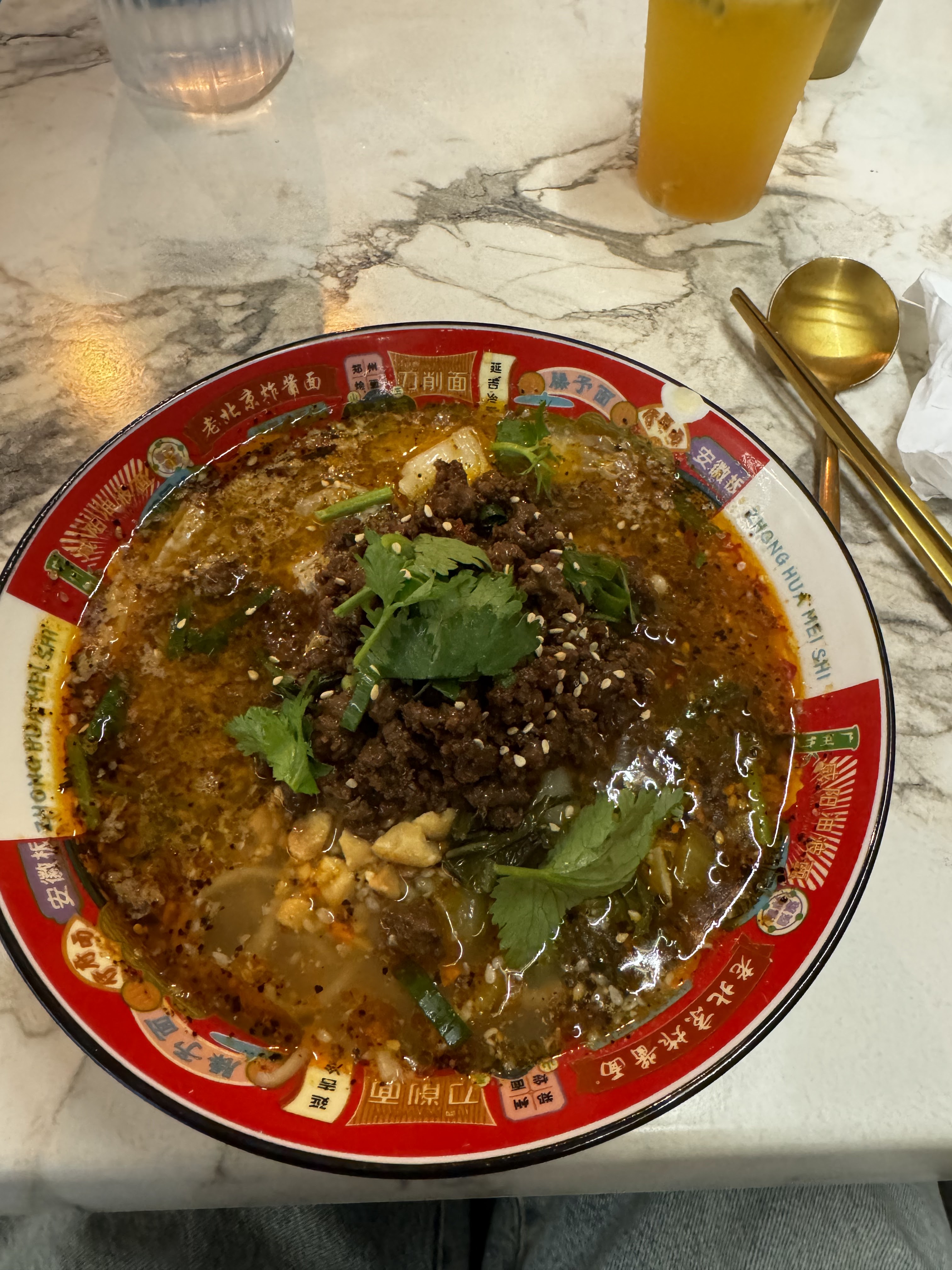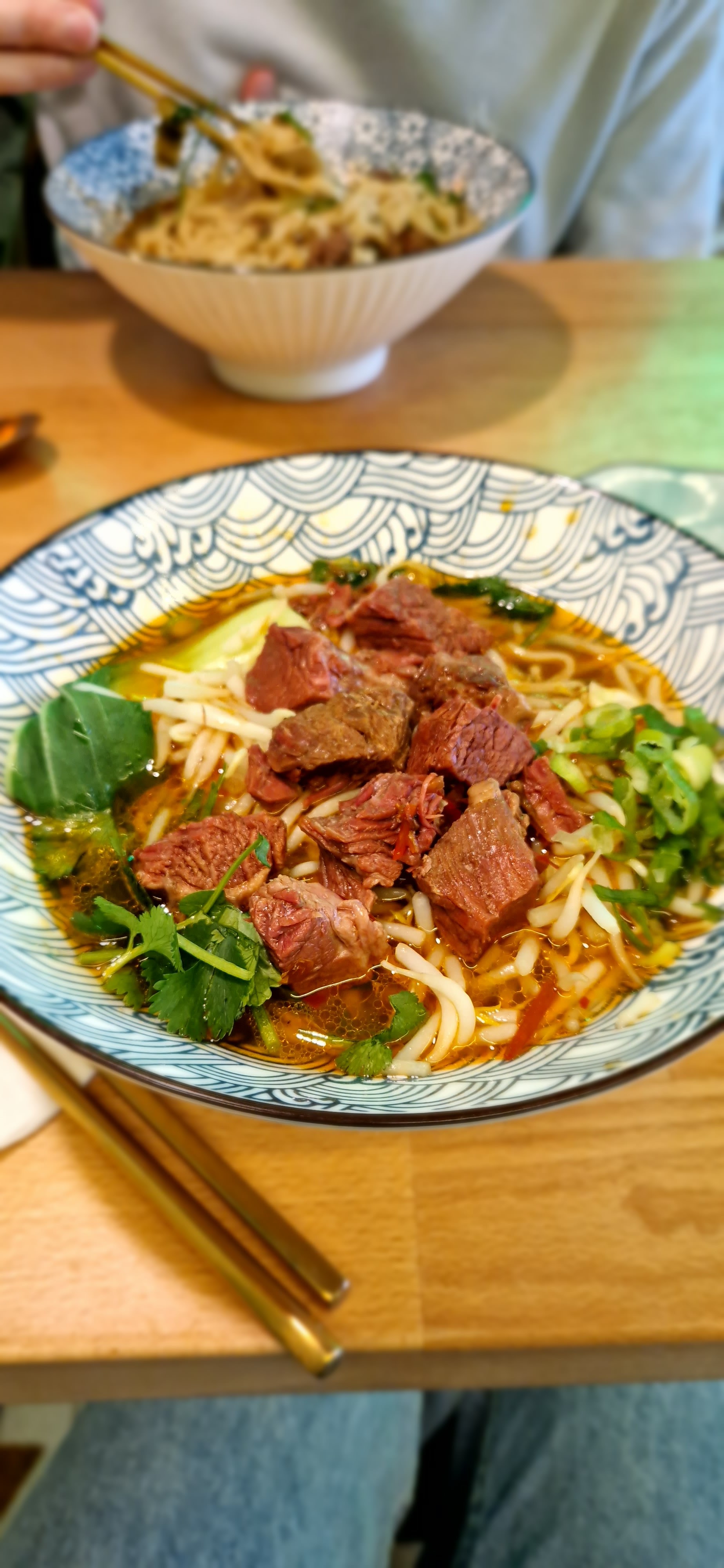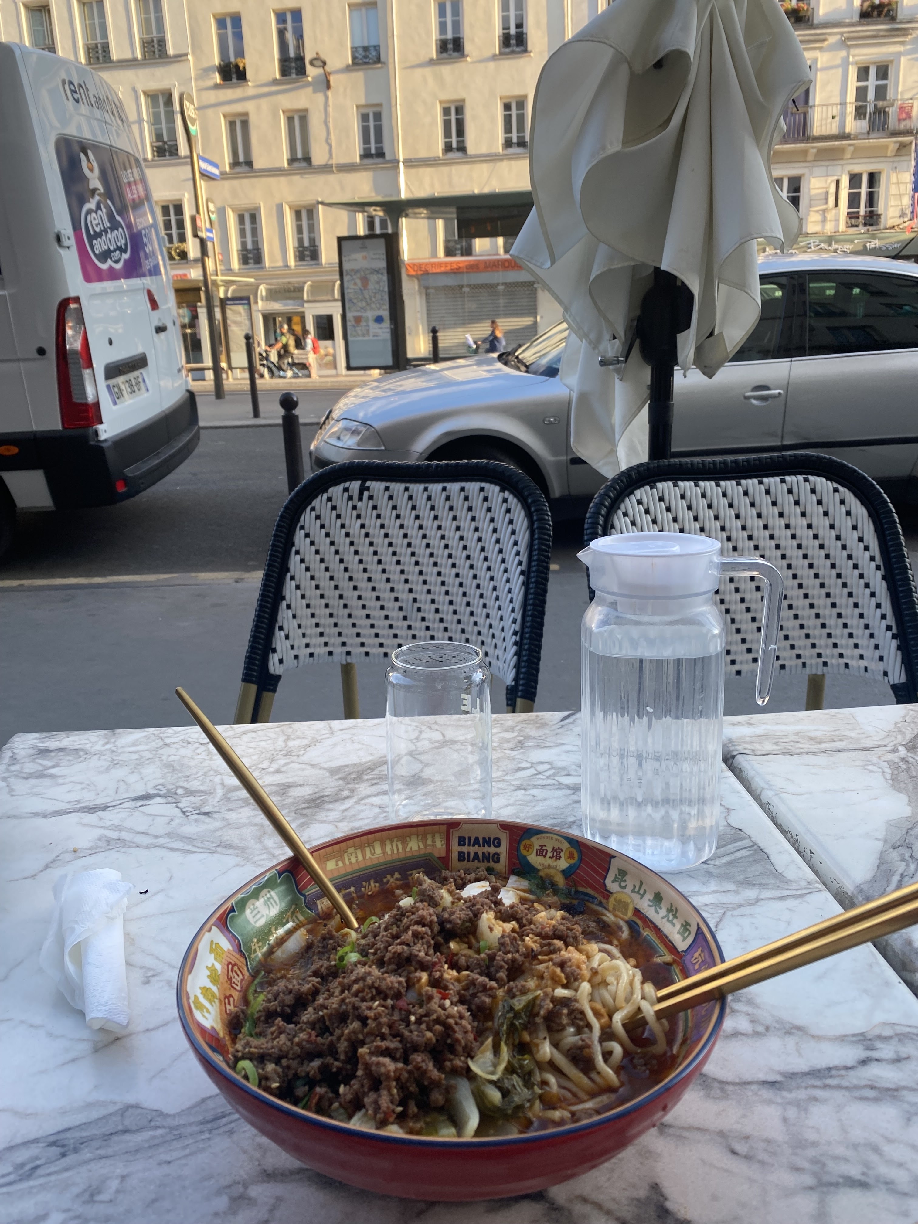 L'une des meilleurs adresses de nouilles chinoises que j'ai testé jusqu'à présent, ils viennent de l'ouest de la Chine et sont ouverts depuis quelques mois Déjà, le boeuf haché était tendre et super bon, c'était frais, bien cuisiné La soupe était trop bonne (je recommande de prendre avec), ça m'a marqué Le personnel est super sympa ! Et très bon rapport qualité-prix ! À découvrir sans plus tarder ! Je reviendrai 🥰