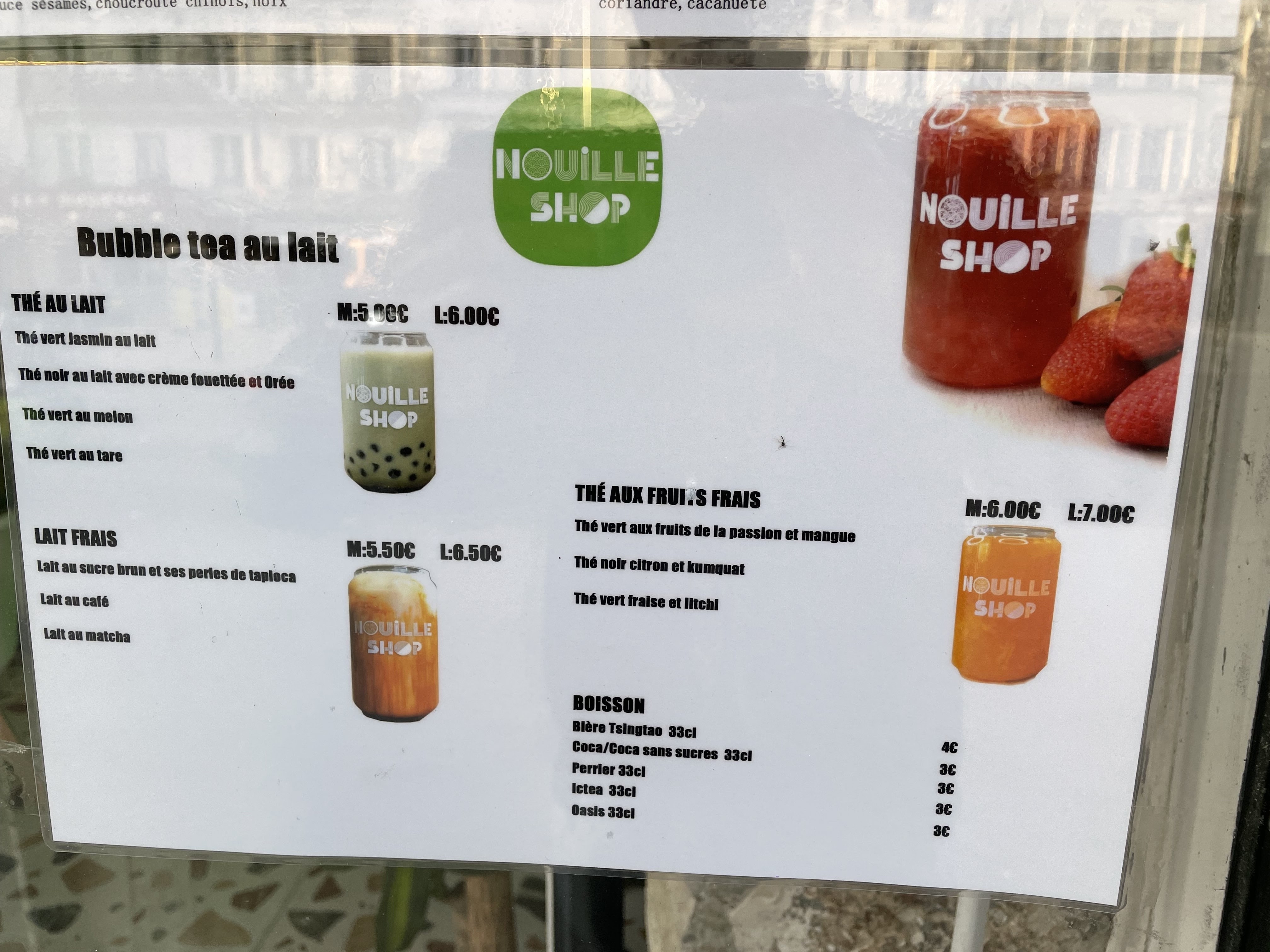 Nouilles délicieuses! Je recommande! Ils proposent aussi des bubble tea comme boisson et ils sont délicieux :) La carte pourrait juste être plus esthétique et plus lisible