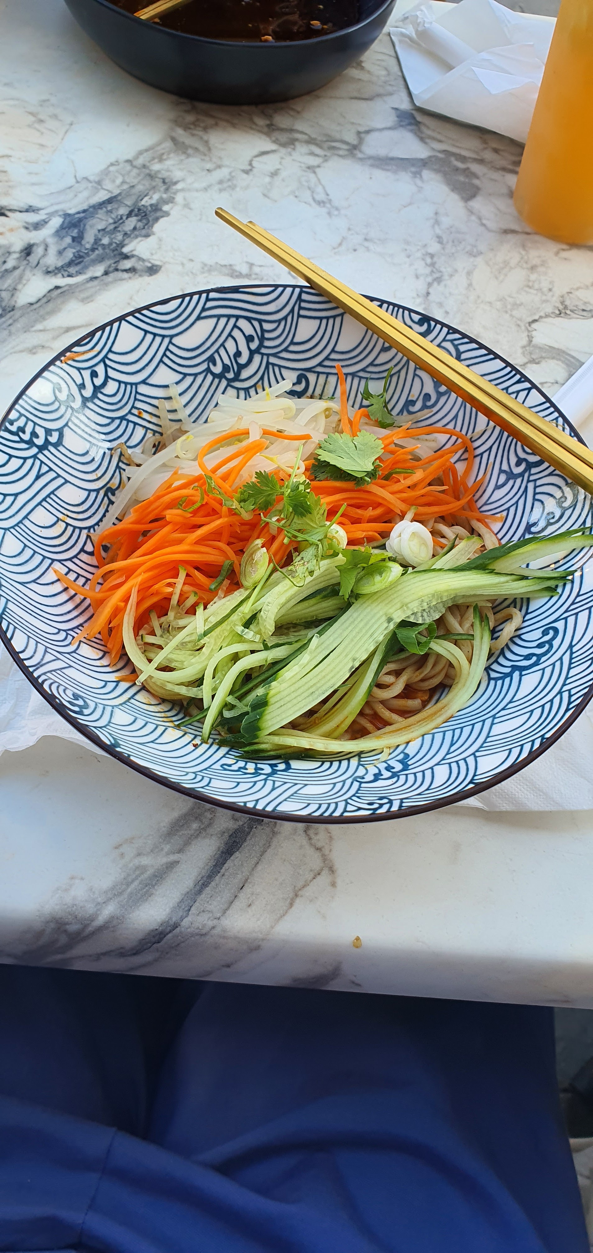 Lieu calme en fin de service au déjeuner , les deux personnes y travaillant accueillante, La raviolis végétarien très bons, pour les nouilles végétariennes le bouillon est très bon les nouilles manquent de gout -fades- (peut être n'ont pas mijoté dans le bouillon)